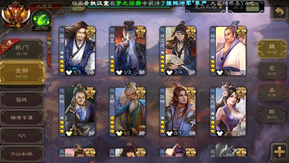 (魏国):王元姬,文鸯,戏志才,界钟会,王朗,SP司马昭,司马师,势董昭,谋曹仁,界于禁,郝昭,王粲,界曹真,程昱,曹纯,杨修,陈琳,嵇康,刘晔