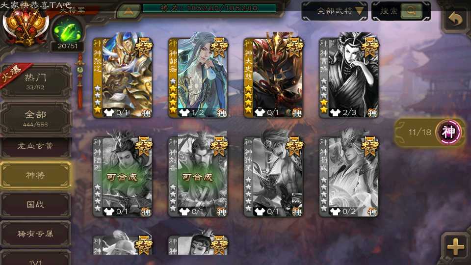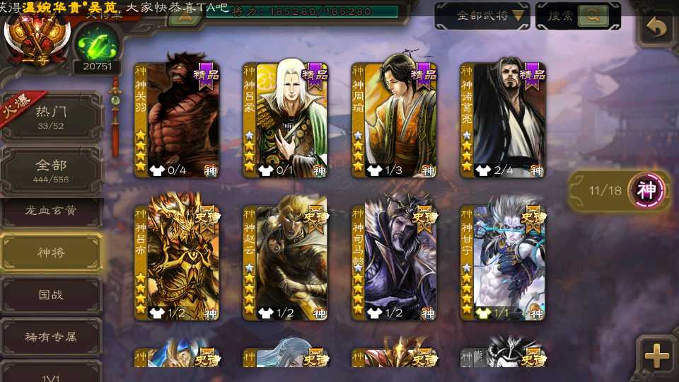 (神将):神郭嘉,神甘宁,神司马懿,神太史慈,神赵云,神吕布,神张辽