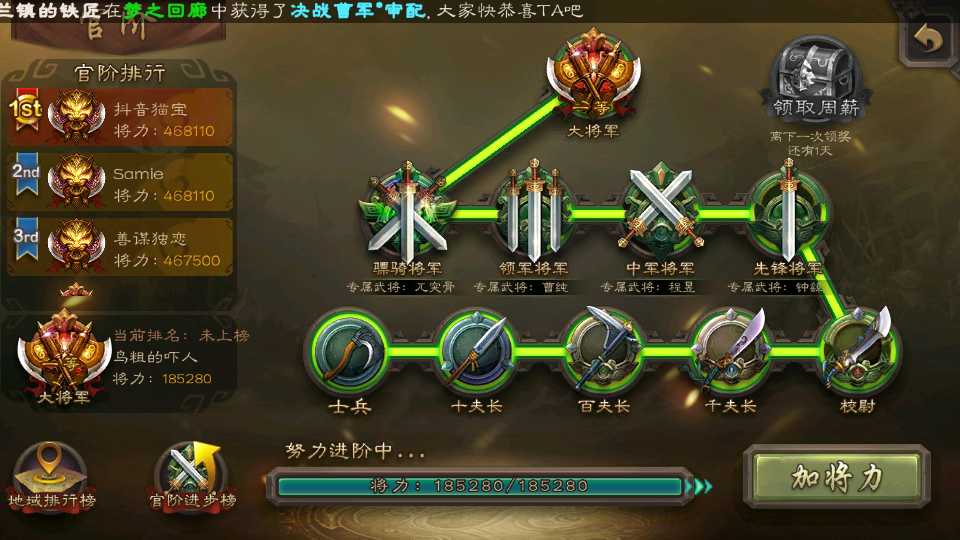官阶:1等大将军