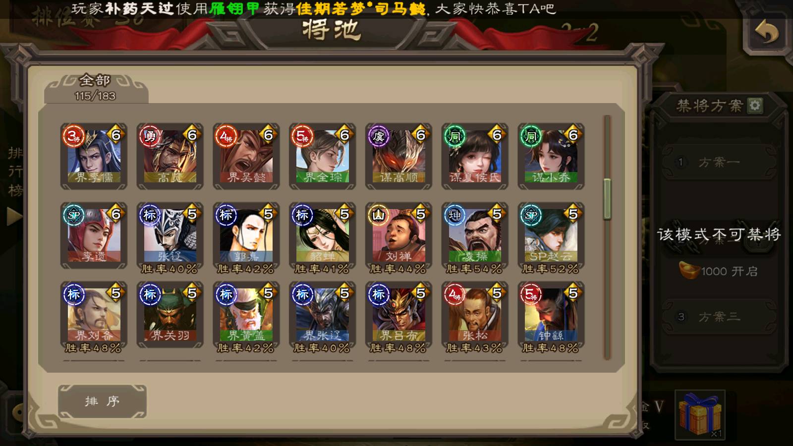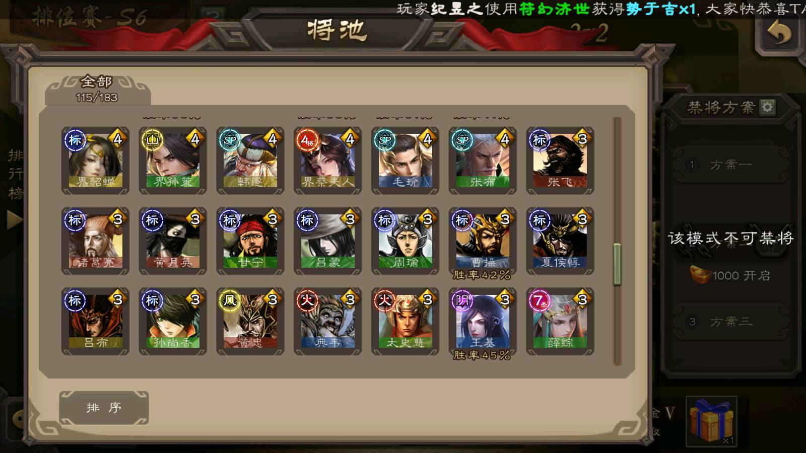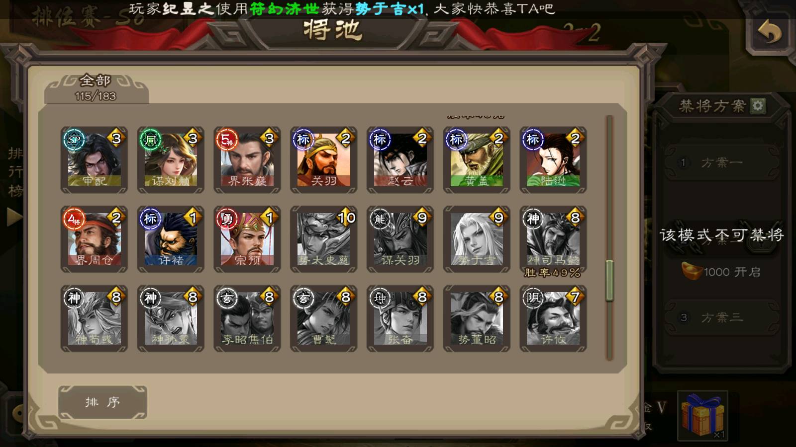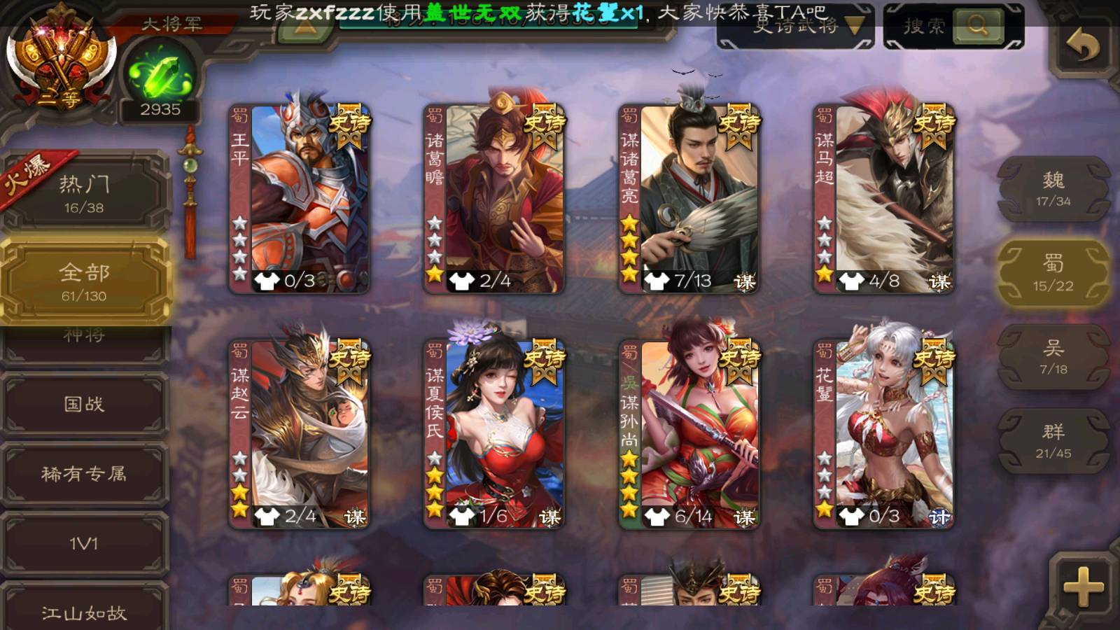 (群雄):刘焉,杜预,界左慈,南华老仙,麴义,界沮授,星董卓,谋貂蝉,司马昭,界李儒,苏飞,十常侍,裴秀,卑弥呼,王允,陶谦,审配,星黄忠,左慈,沮授,兀突骨