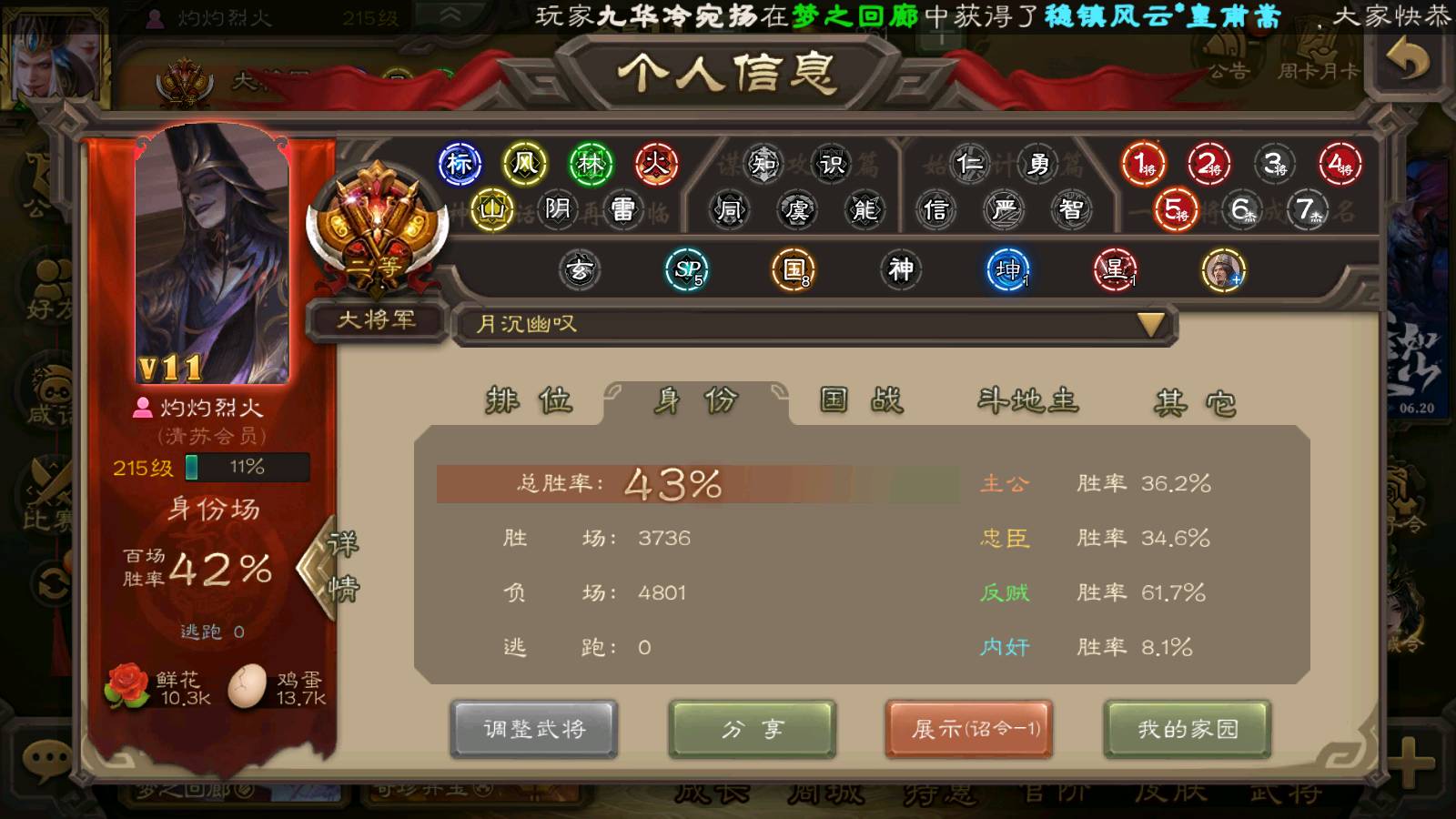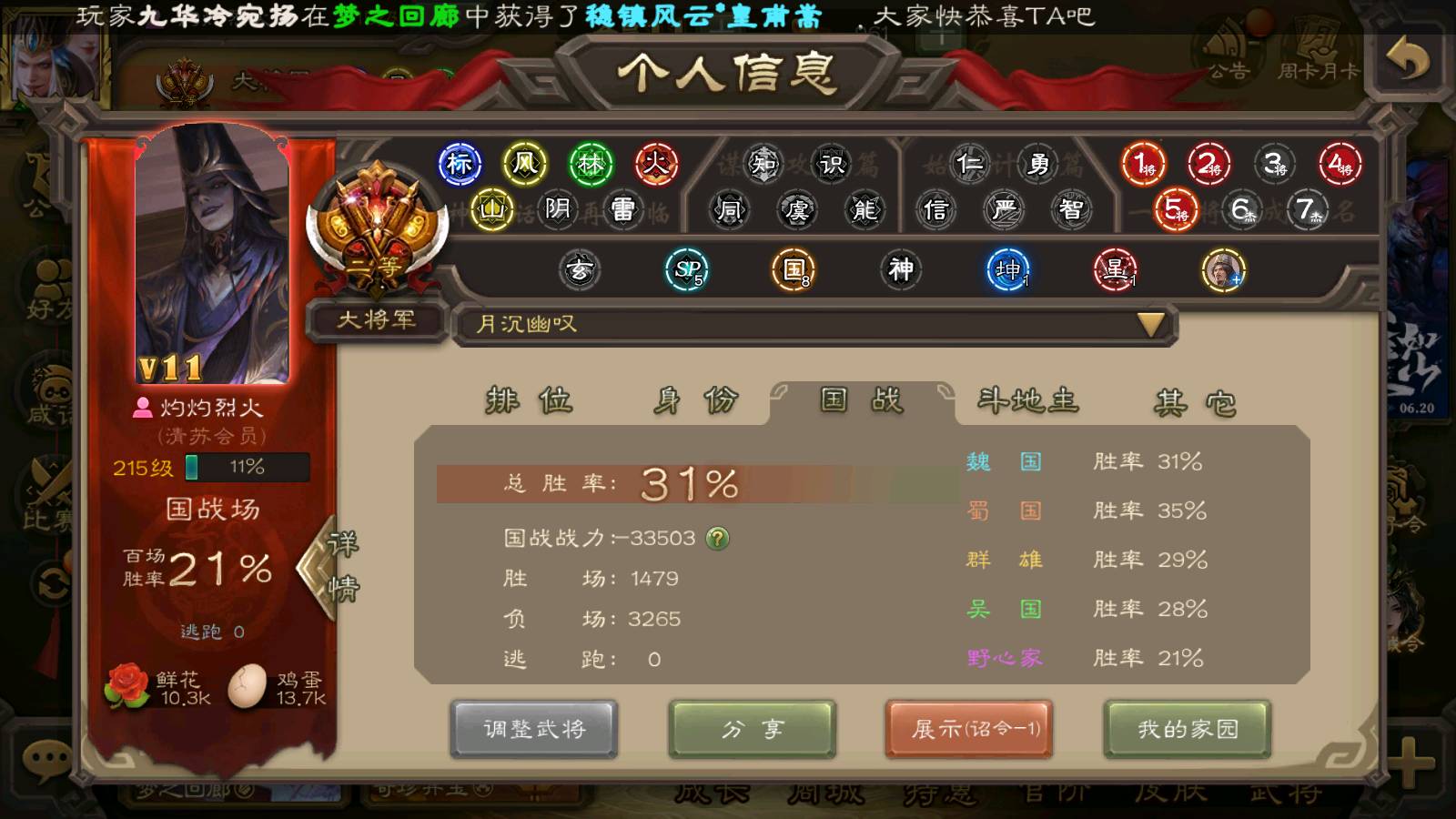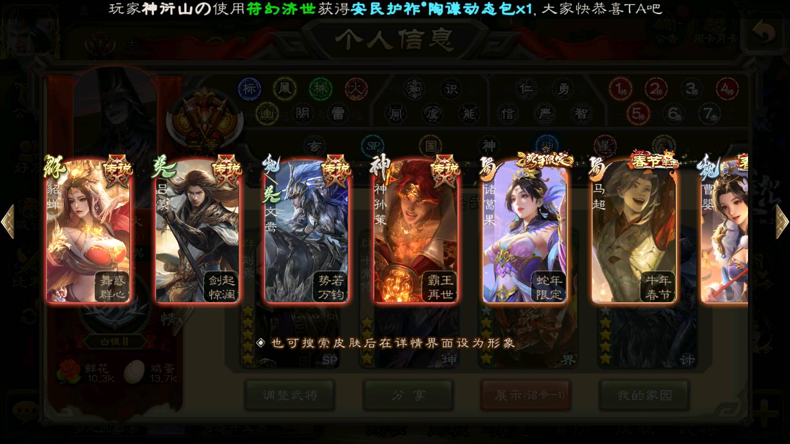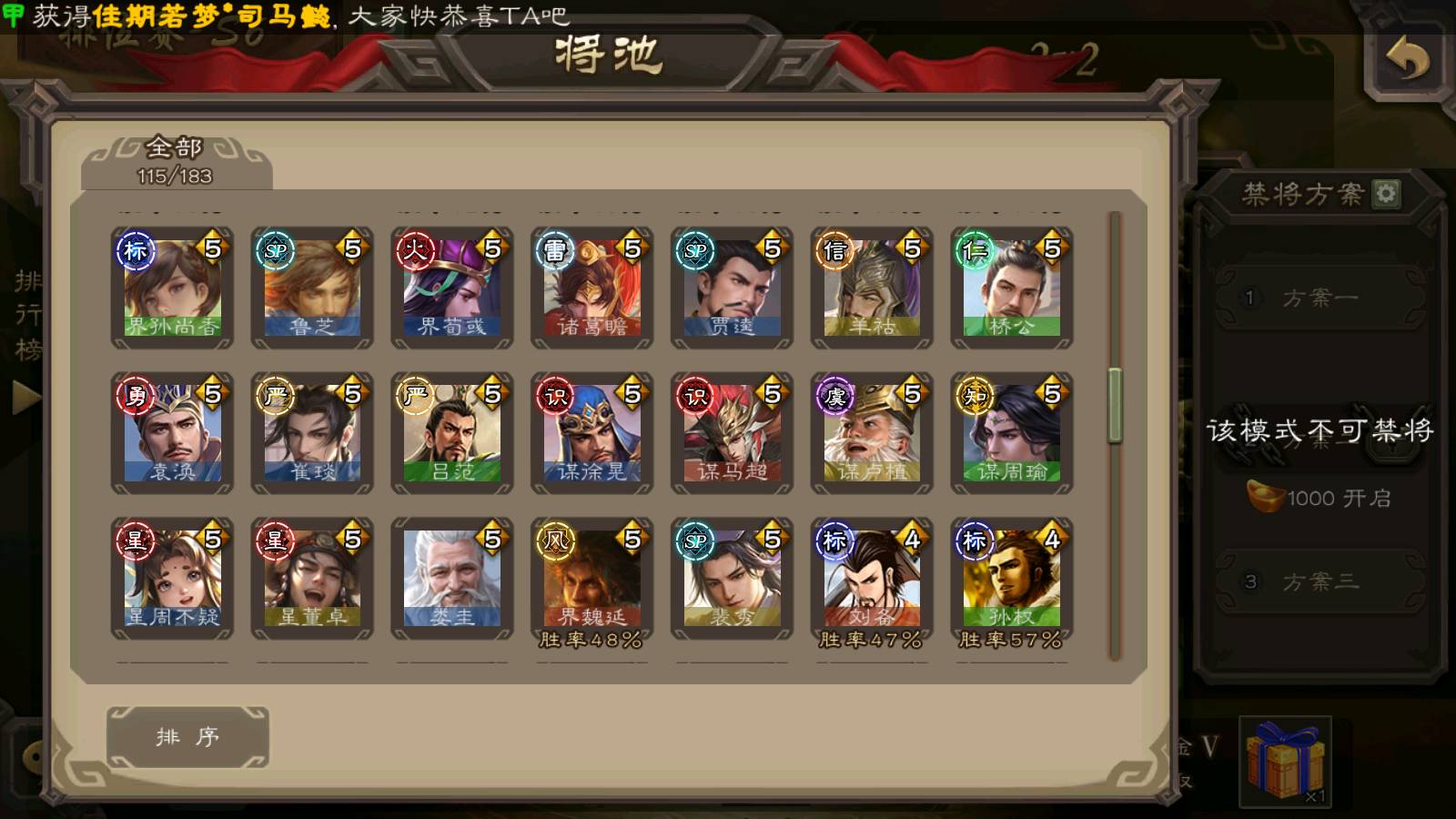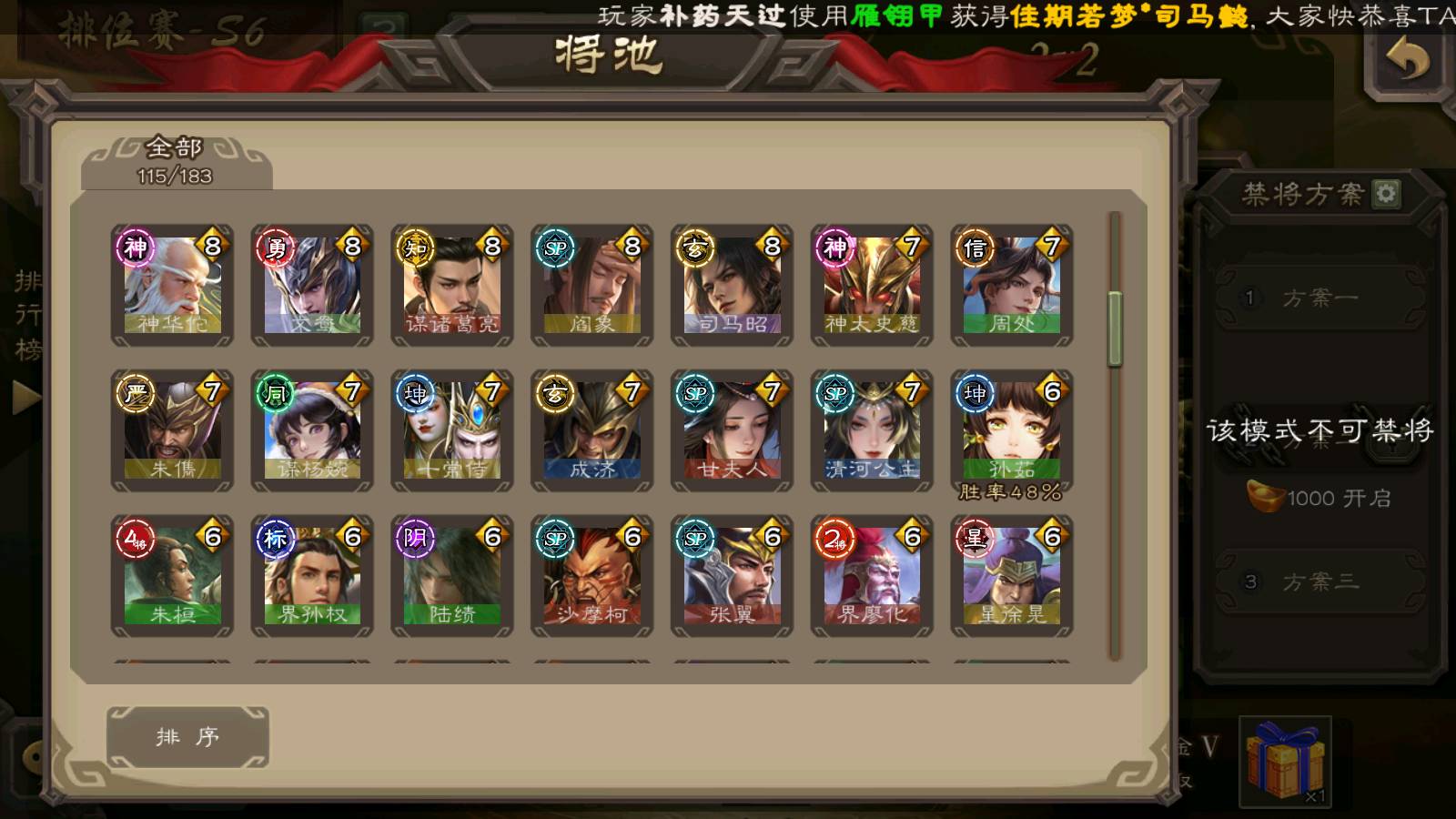 (群雄):刘焉,杜预,界左慈,南华老仙,麴义,界沮授,星董卓,谋貂蝉,司马昭,界李儒,苏飞,十常侍,裴秀,卑弥呼,王允,陶谦,审配,星黄忠,左慈,沮授,兀突骨