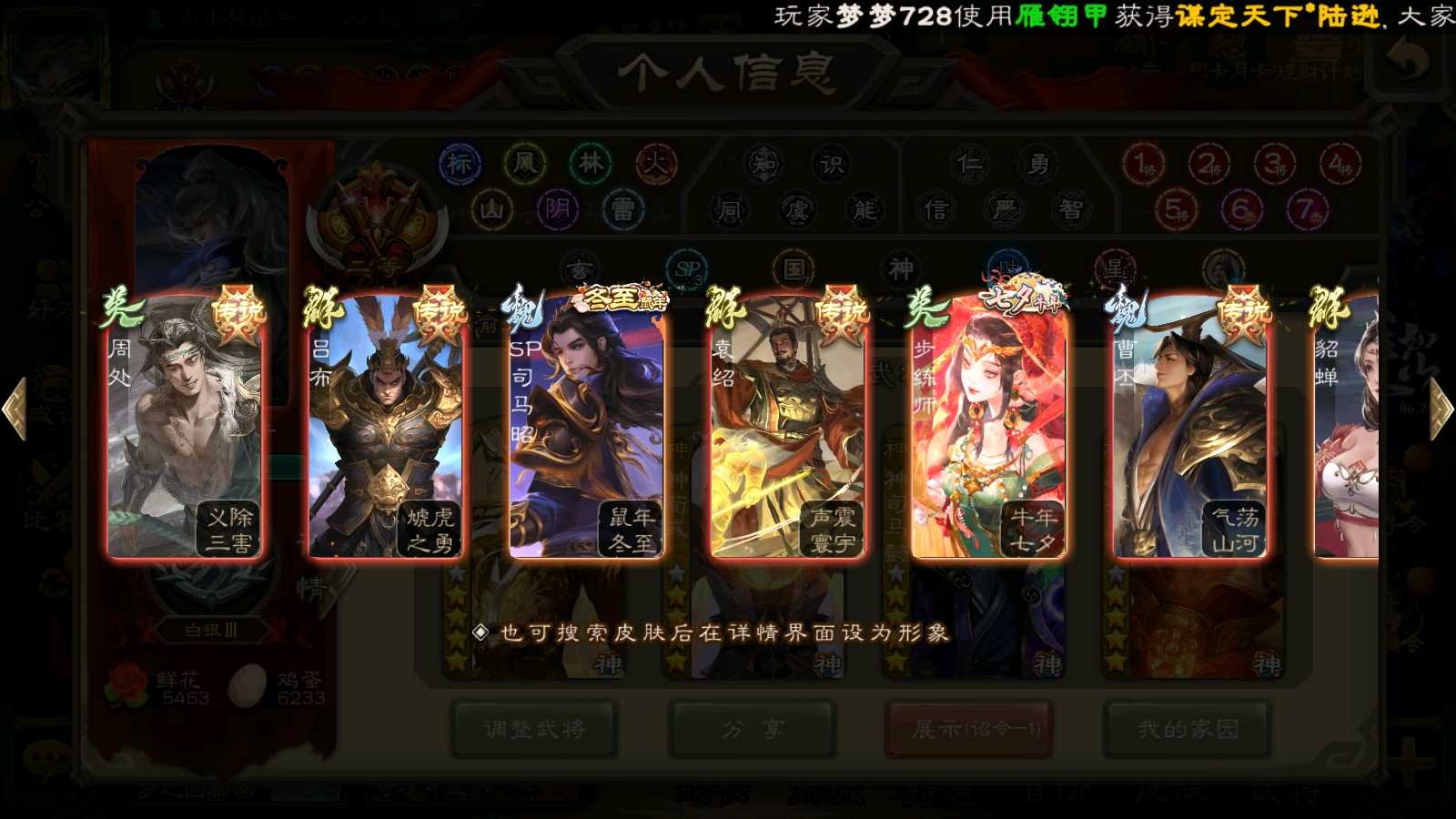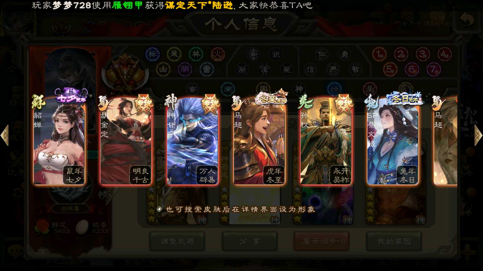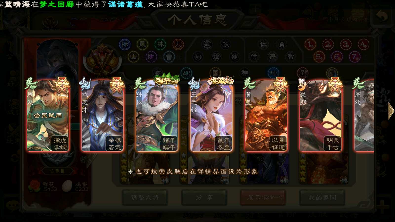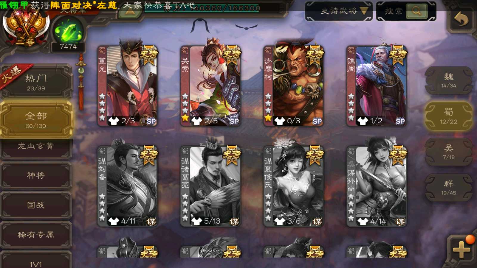 (群雄):杨彪,杜预,祢衡,界左慈,南华老仙,麴义,许攸,界沮授,庞德公,张让,界李儒,苏飞,皇甫嵩,卑弥呼,陶谦,星黄忠,左慈,沮授,兀突骨