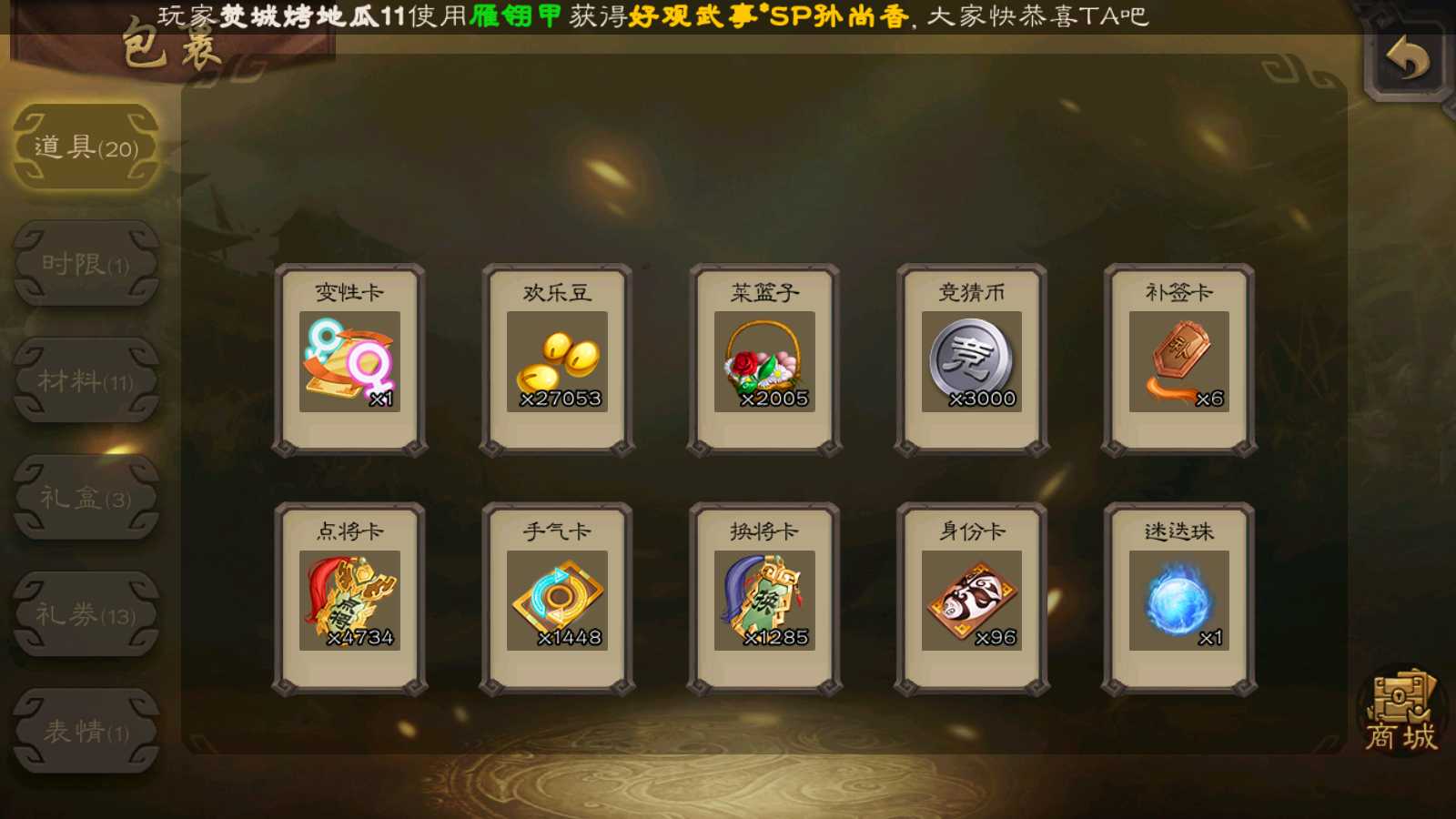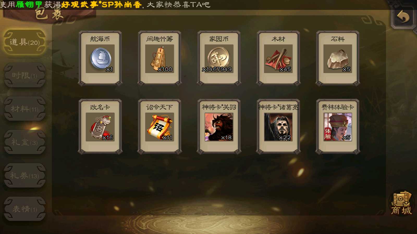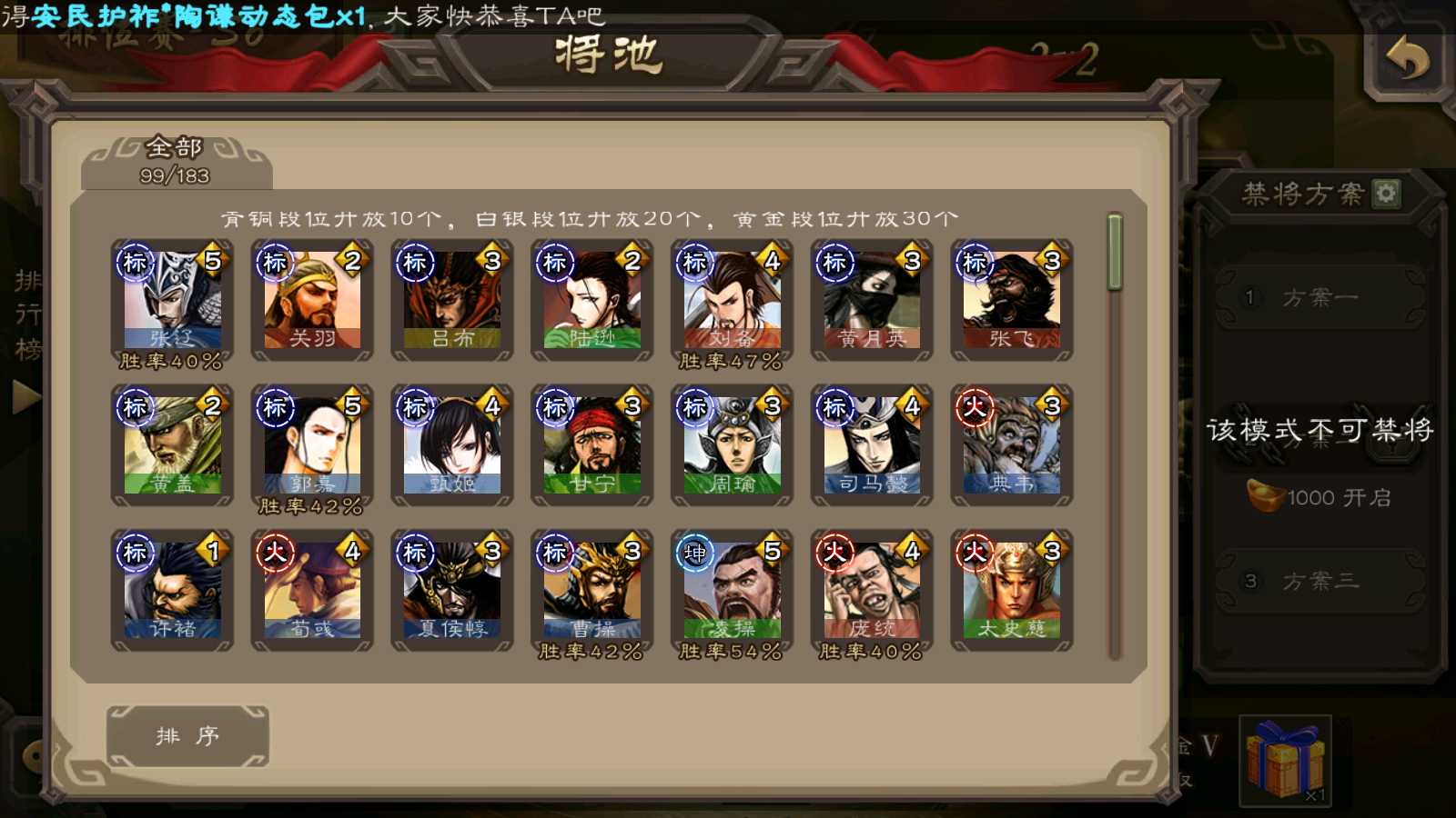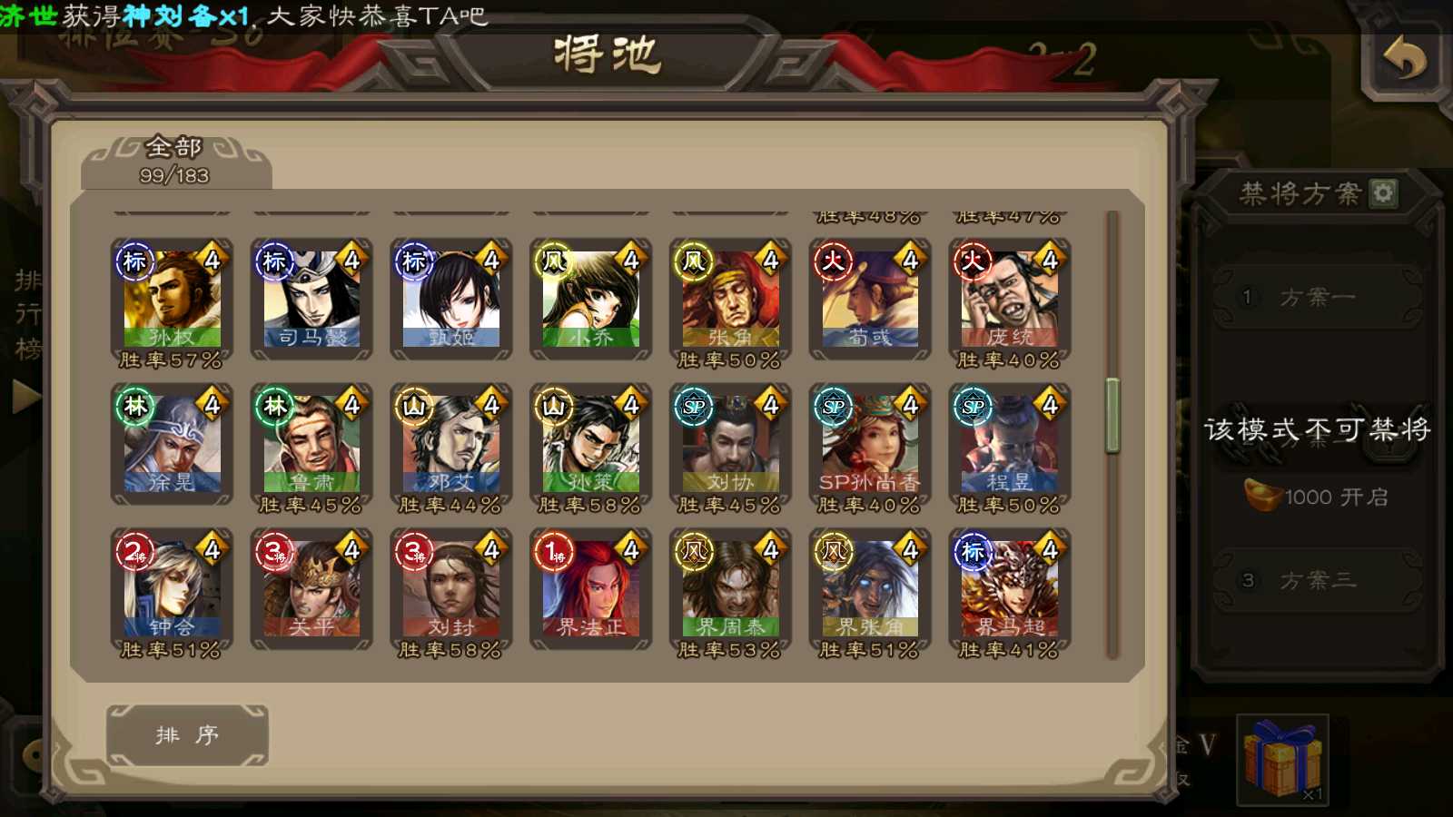 (群雄):杨彪,杜预,祢衡,界左慈,南华老仙,麴义,许攸,界沮授,庞德公,张让,界李儒,苏飞,皇甫嵩,卑弥呼,陶谦,星黄忠,左慈,沮授,兀突骨