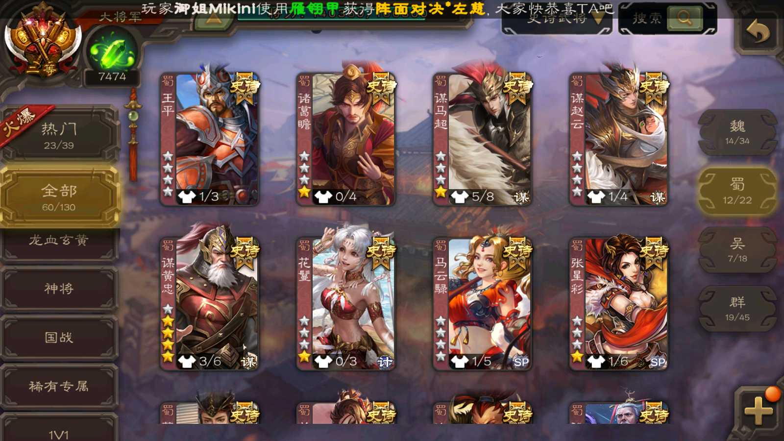 (蜀国):谋黄忠,诸葛瞻,谋赵云,花鬘,沙摩柯,谯周,谋马超,关索,张星彩,王平,马云騄,董允