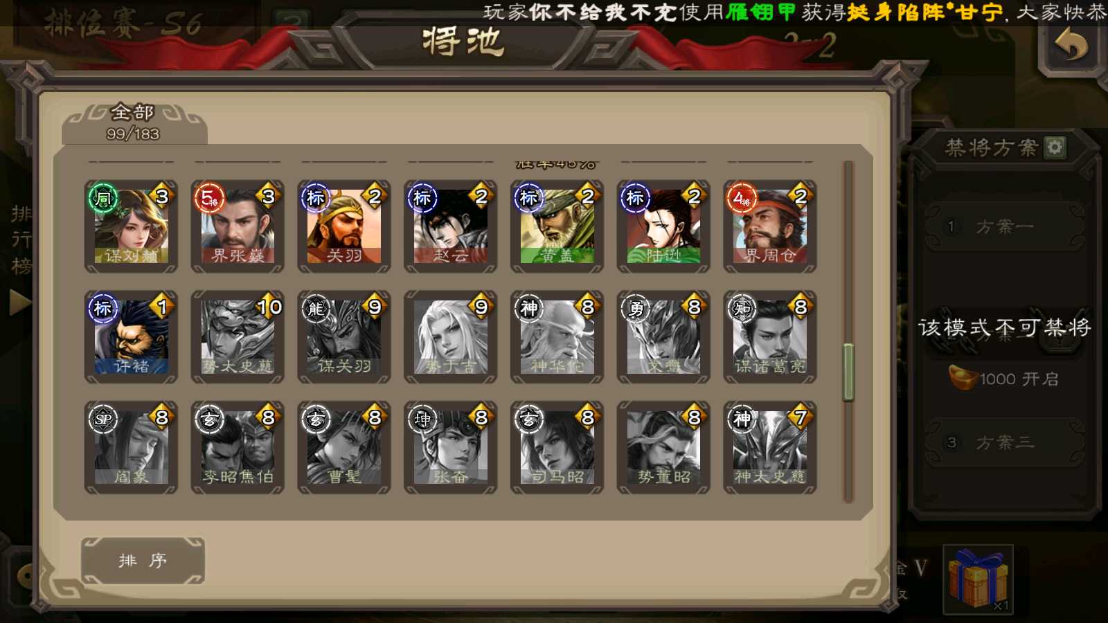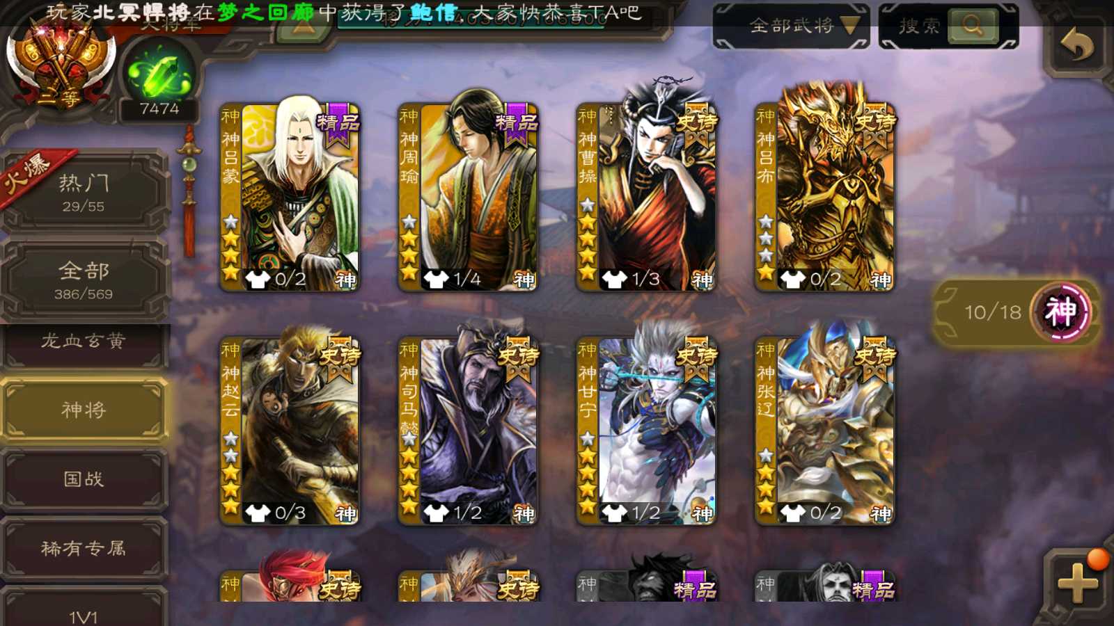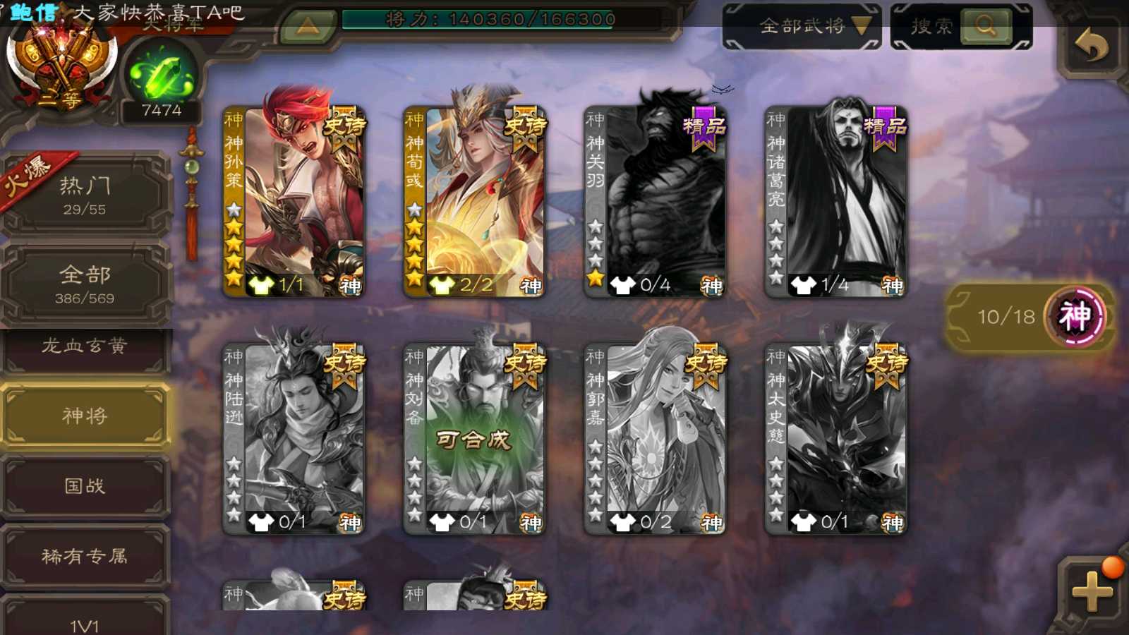 (神将):神荀彧,神甘宁,神曹操,神孙策,神司马懿,神赵云,神吕布,神张辽