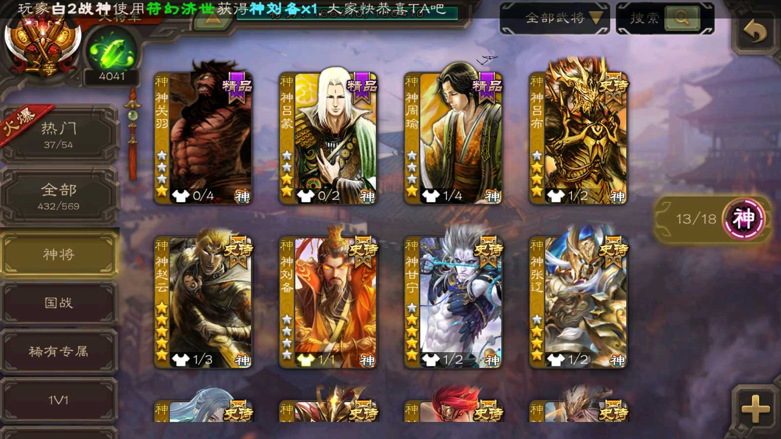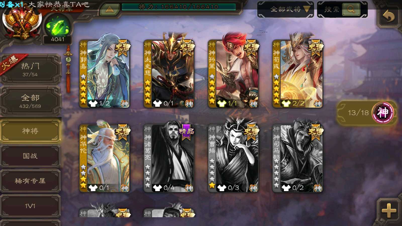 (神将):神荀彧,神郭嘉,神甘宁,神孙策,神华佗,神太史慈,神赵云,神吕布,神刘备,神张辽