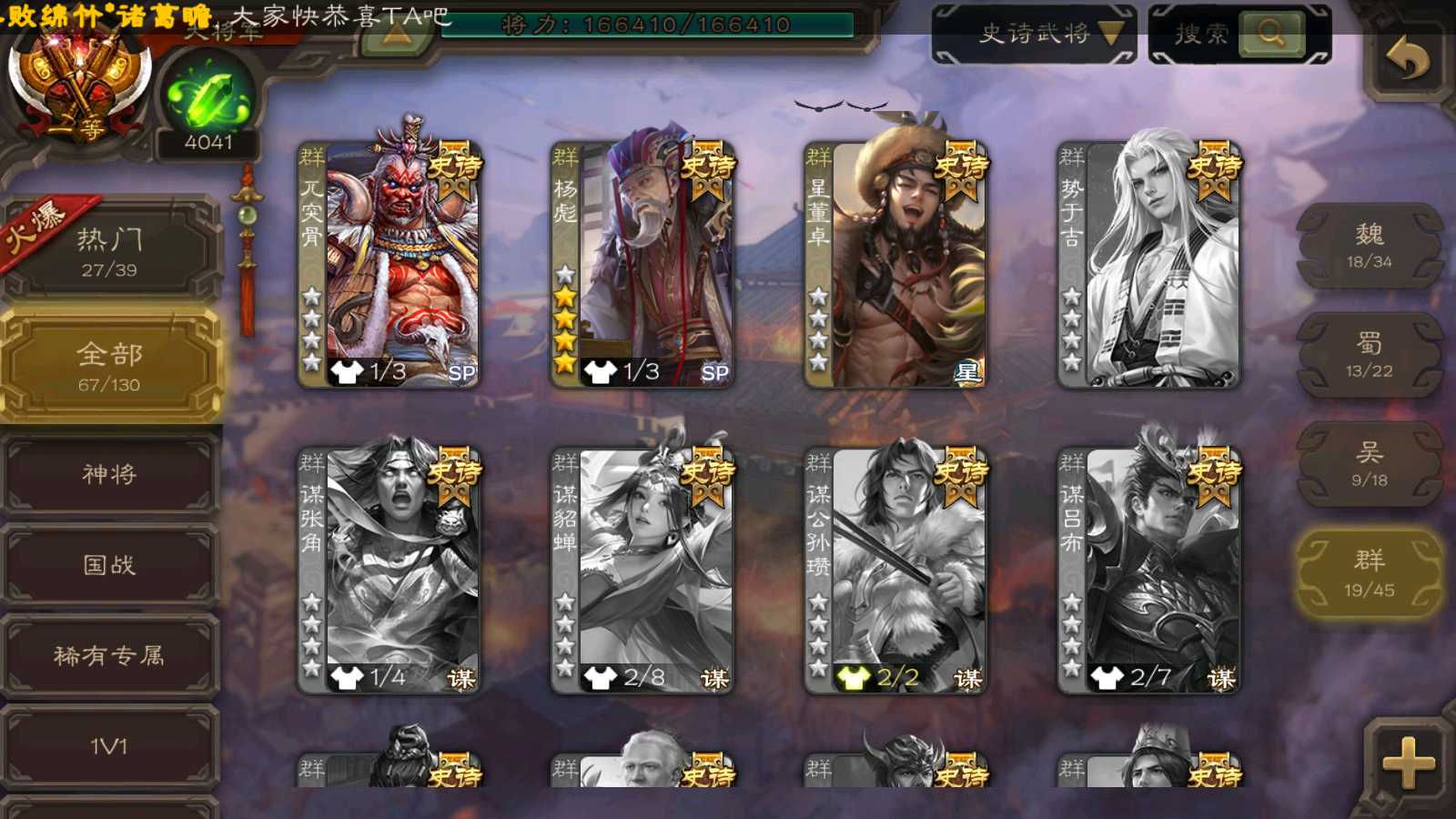 (群雄):刘焉,杨彪,界左慈,麴义,许攸,星董卓,张让,界李儒,苏飞,张琪瑛,卑弥呼,士燮,王允,公孙康,刘璋,陶谦,左慈,沮授,兀突骨