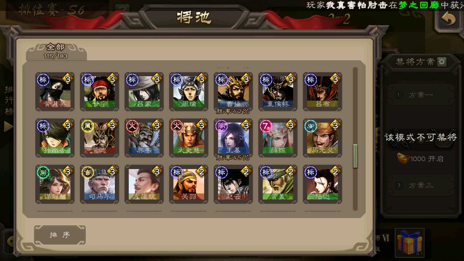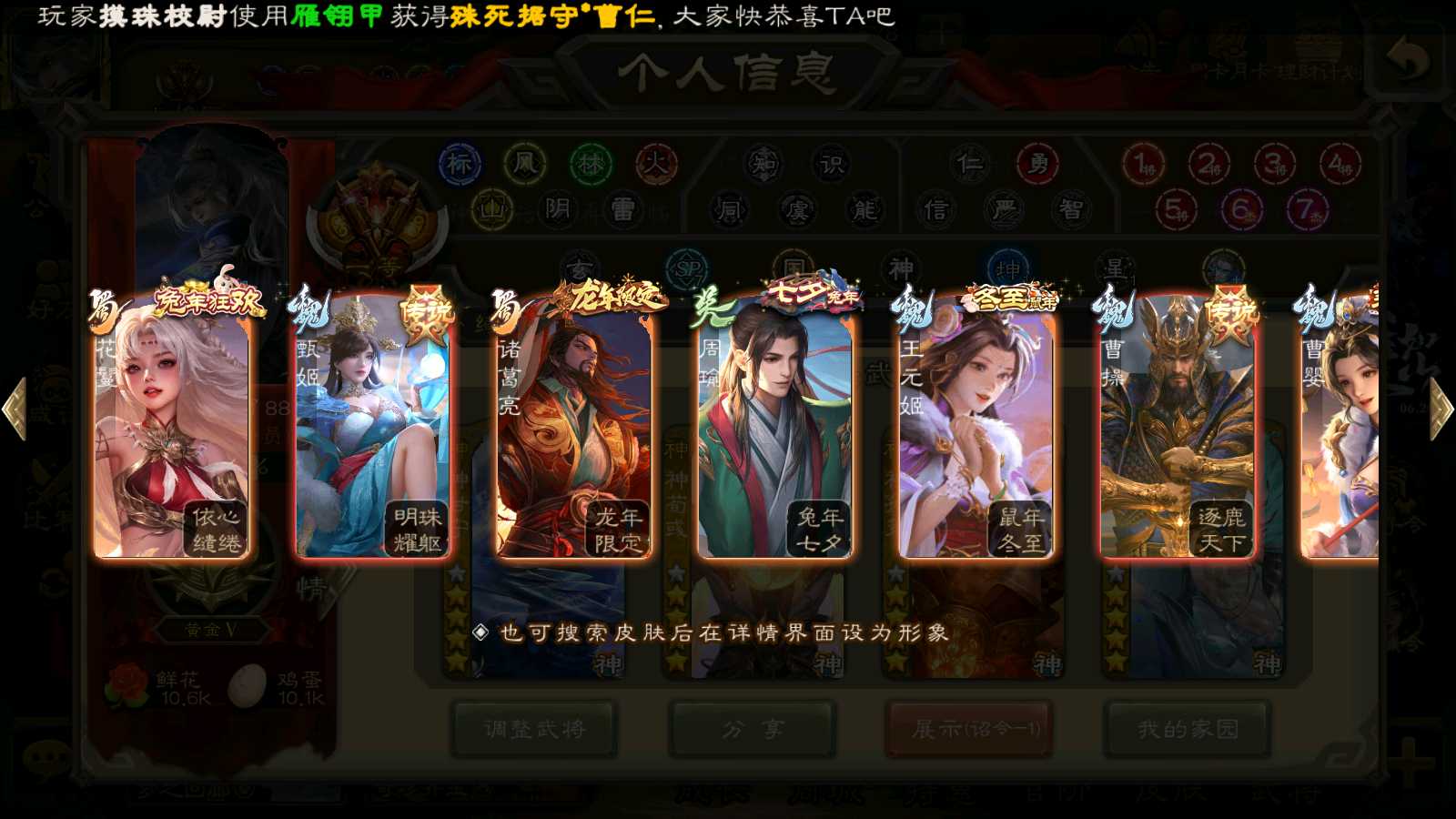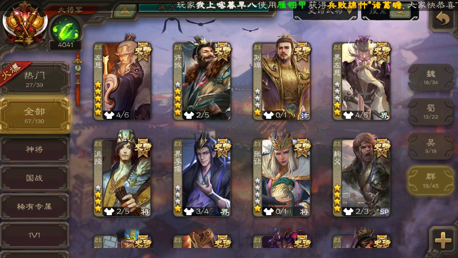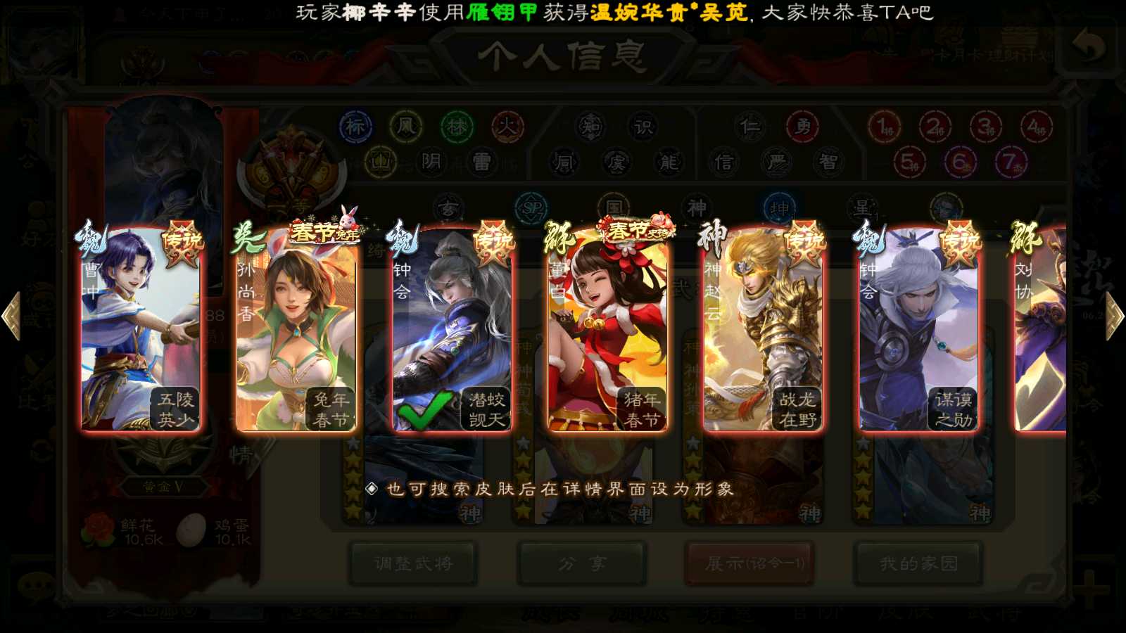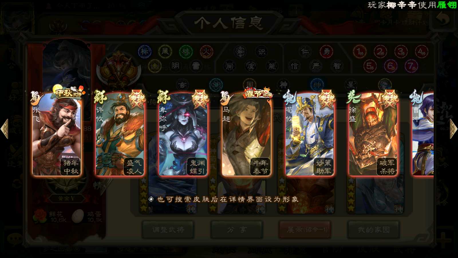 (蜀国):界黄忠,谋黄忠,谋孙尚香,诸葛瞻,谋赵云,花鬘,沙摩柯,关索,张星彩,王平,马云騄,董允,赵襄