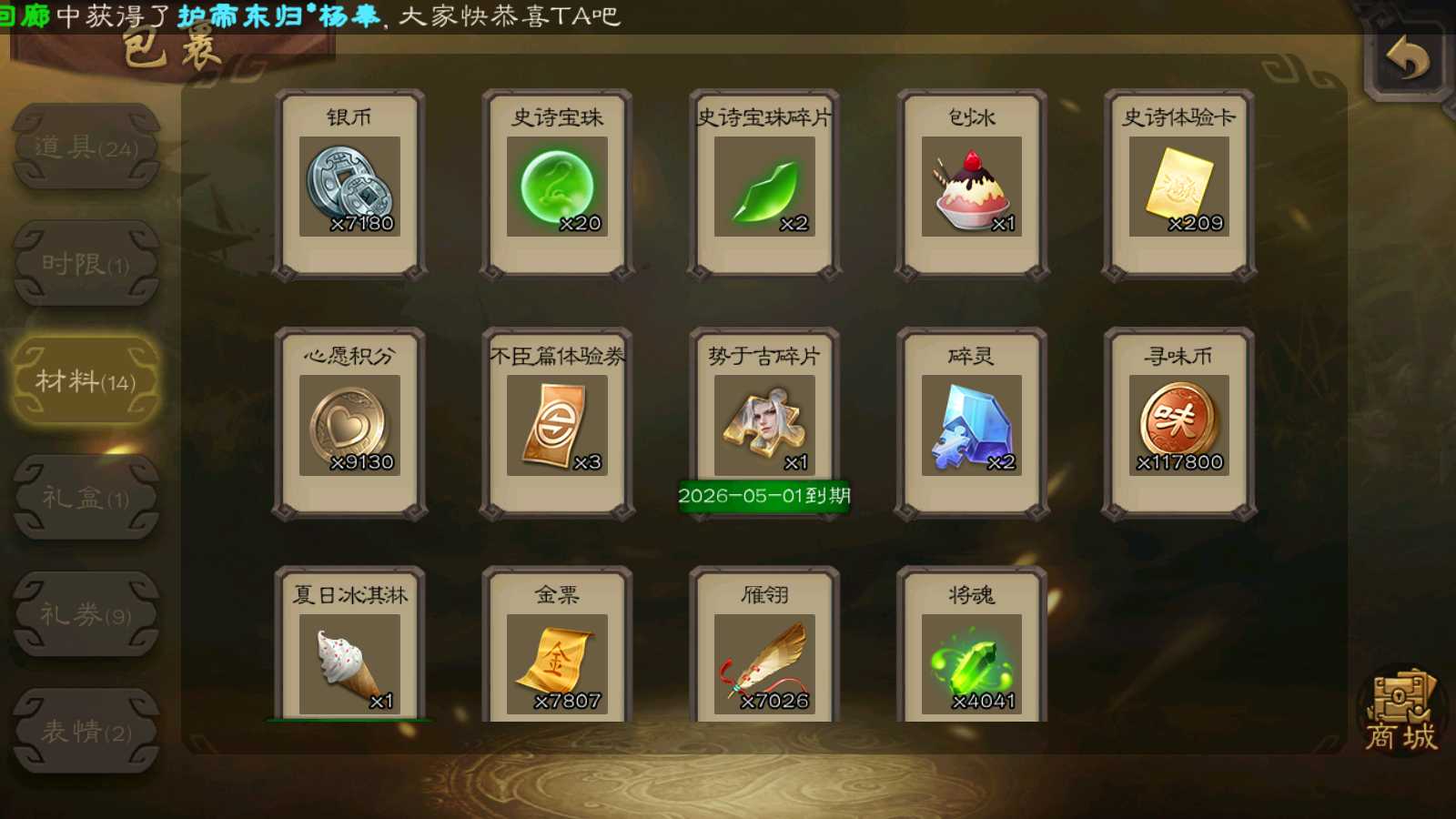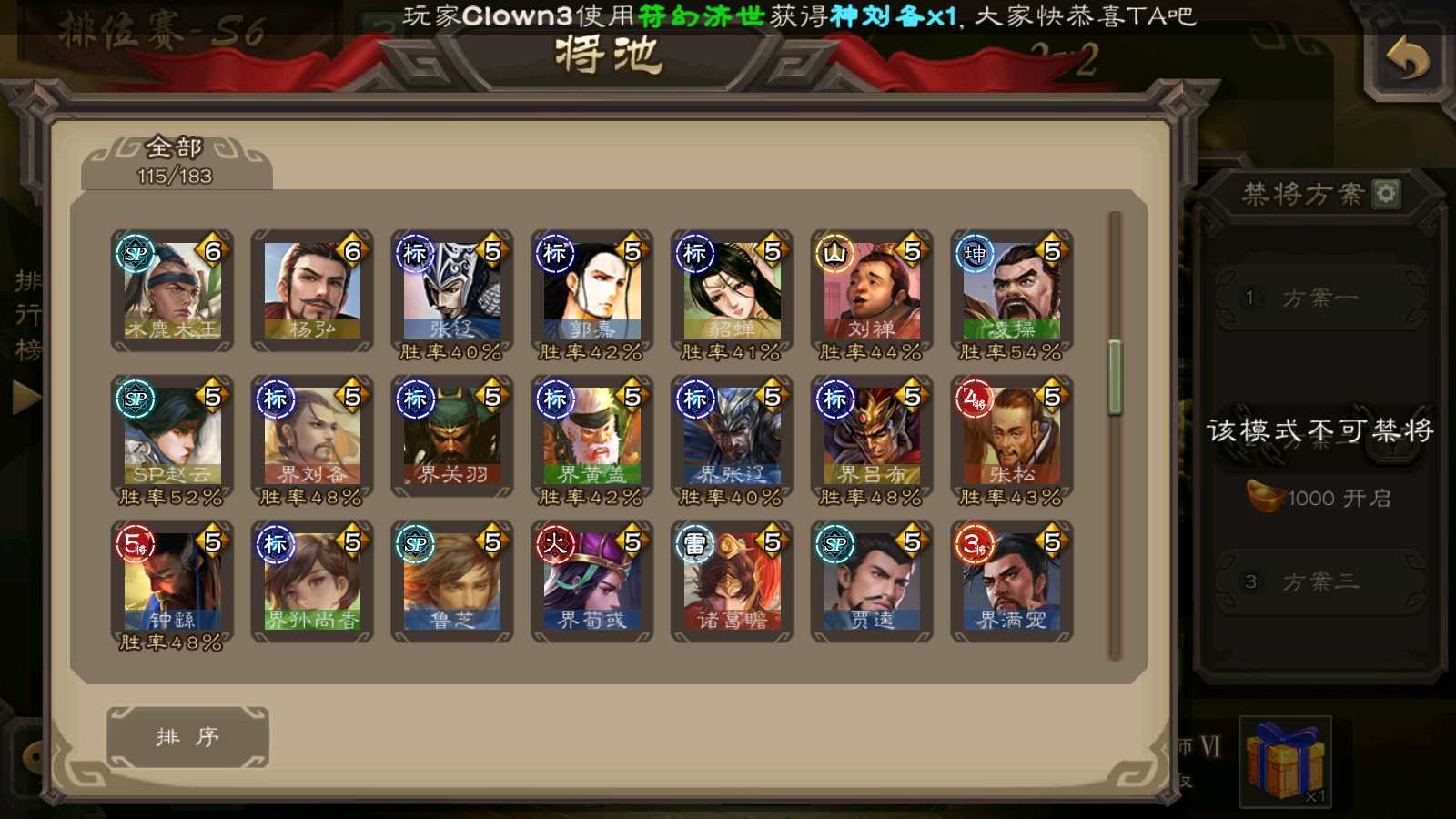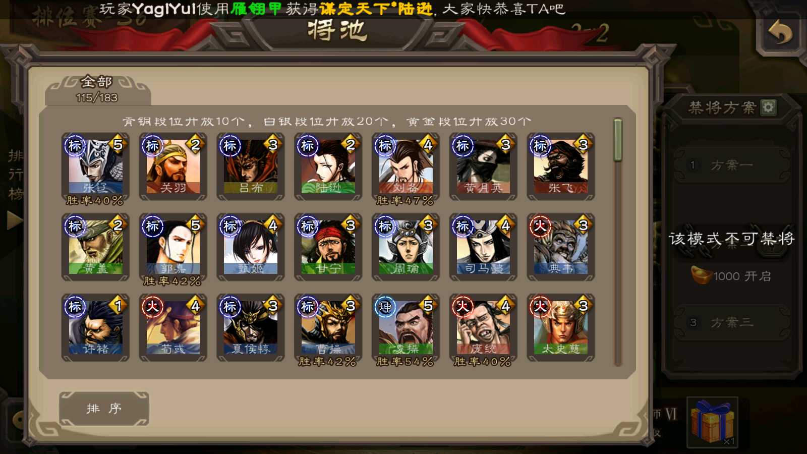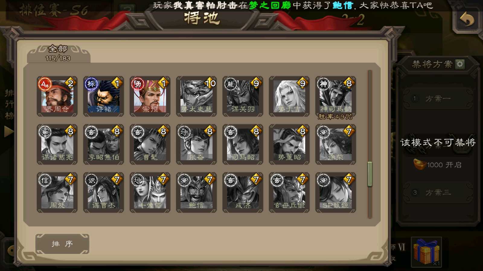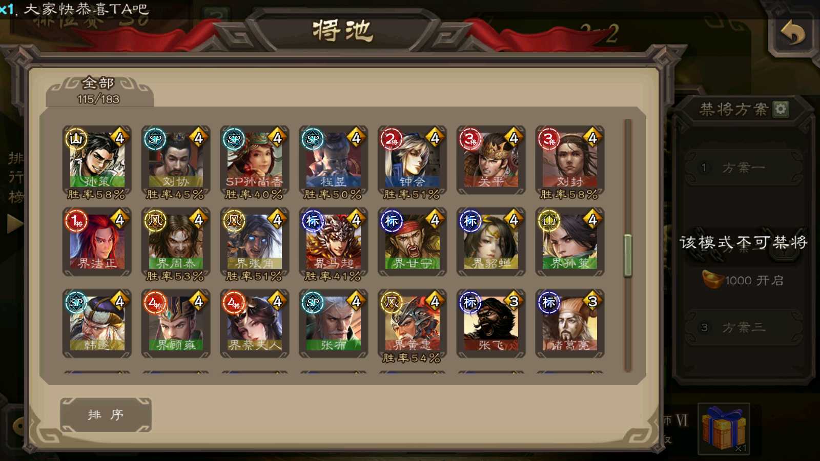 (蜀国):界黄忠,谋黄忠,谋孙尚香,诸葛瞻,谋赵云,花鬘,沙摩柯,关索,张星彩,王平,马云騄,董允,赵襄