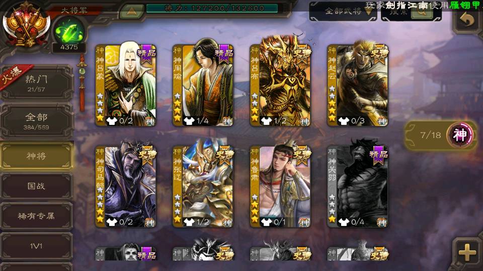 (神将):神鲁肃,神司马懿,神赵云,神吕布,神张辽