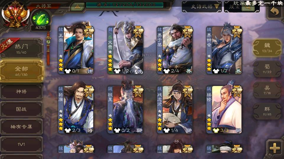 (魏国):马钧,王元姬,文鸯,戏志才,界钟会,曹髦,界于禁,王粲,星周不疑,程昱,曹纯,杨修,嵇康
