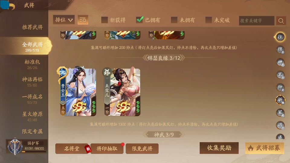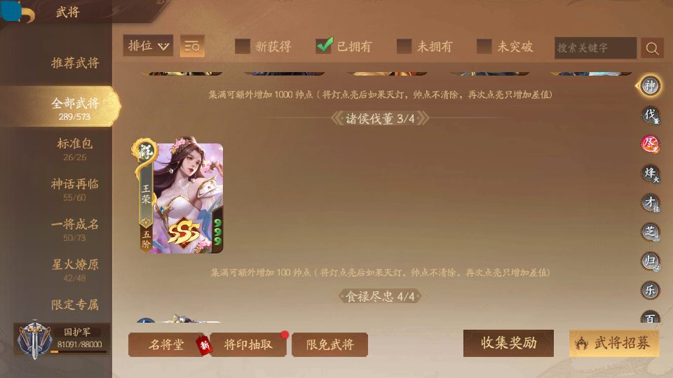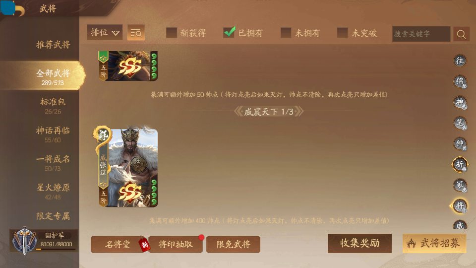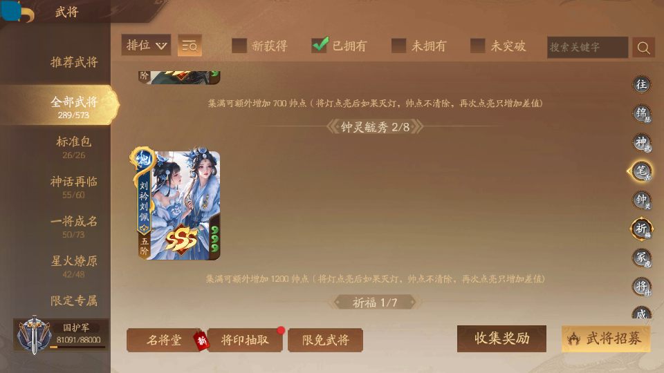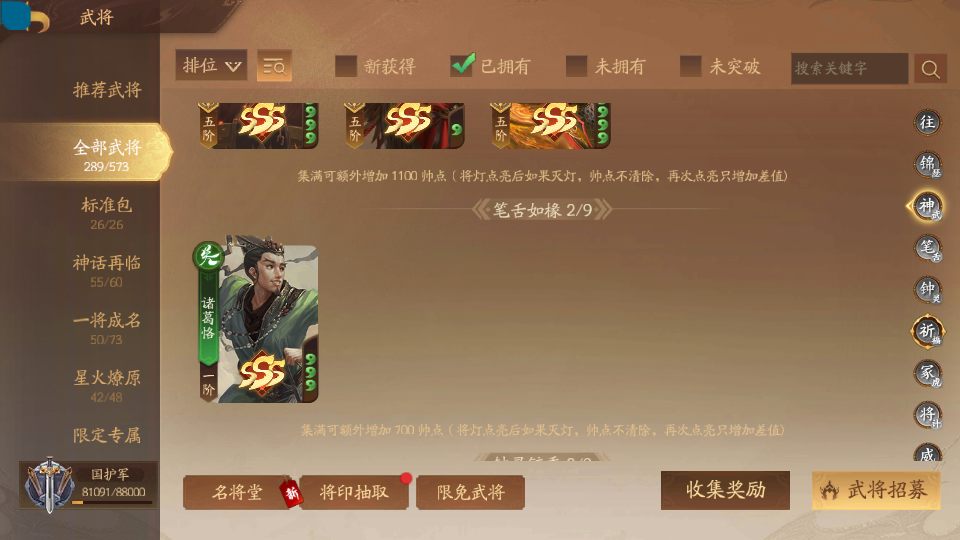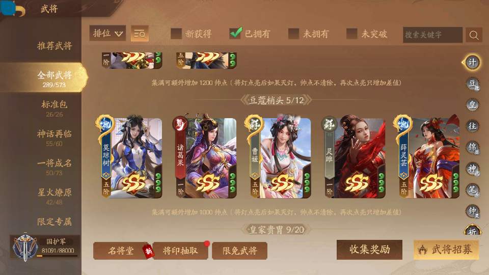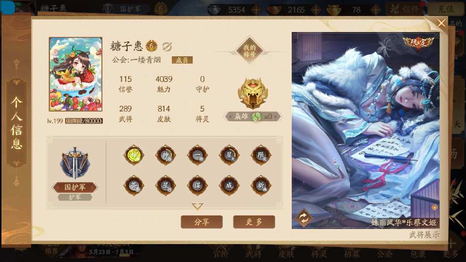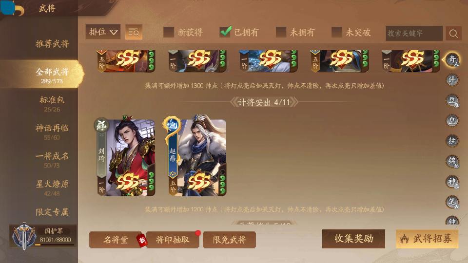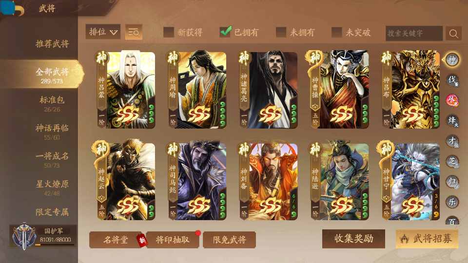 商品编号sa161 武将:神张飞,神庞统,神黄忠,王荣,曹金玉,曹髦,来莺儿,蒲元,管辂,司马徽,鲍三娘,滕公主(限动),张嫙,周宣,薛灵芸(限动),全惠解,乐蔡文姬(限动),乐祢衡 将灵:SSA赵襄 包裹:传世玉4,祈福灯83,V会员6,总武将289,总皮肤814,总国战91,帅点8.1w