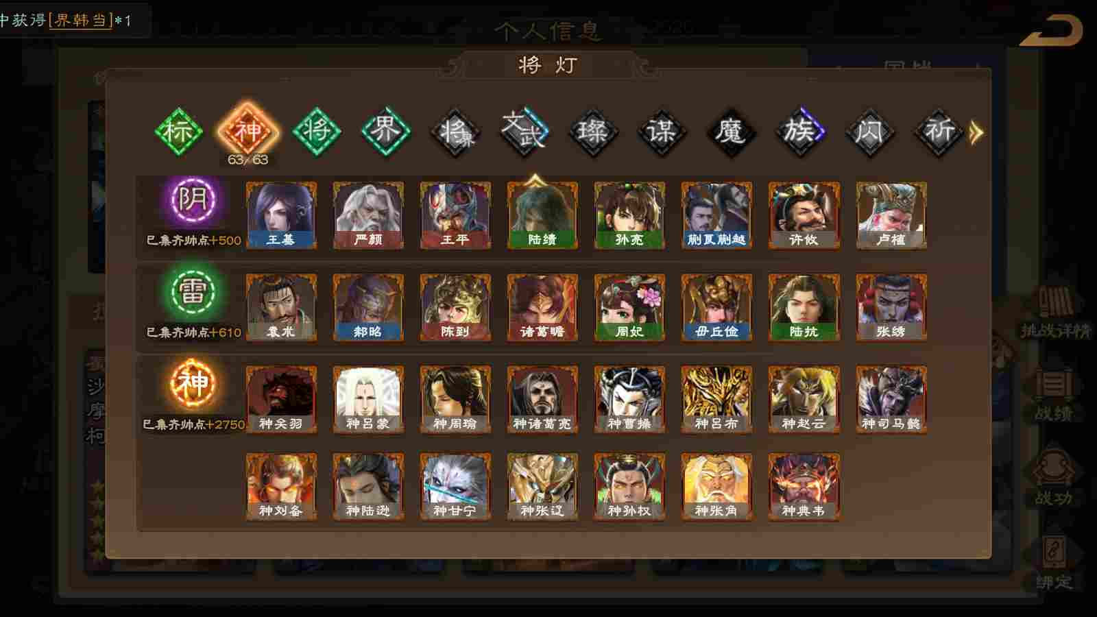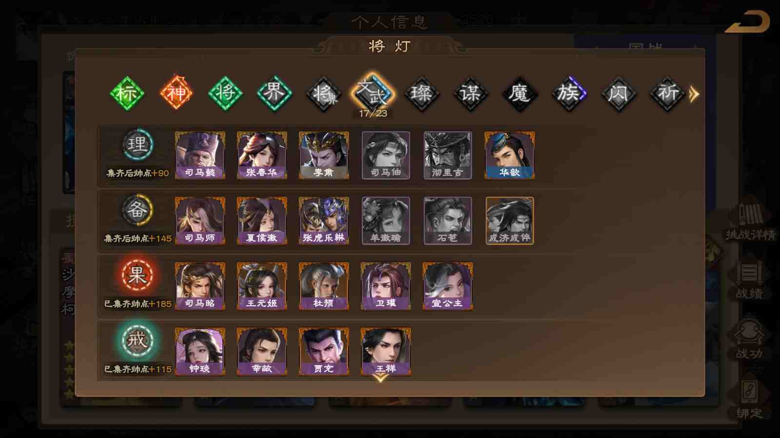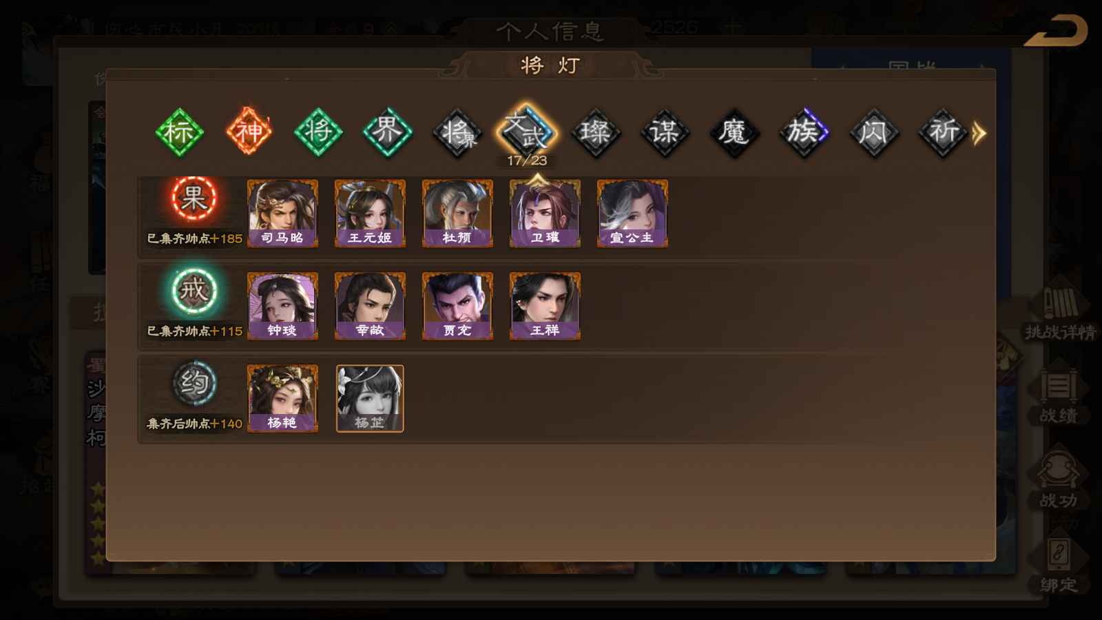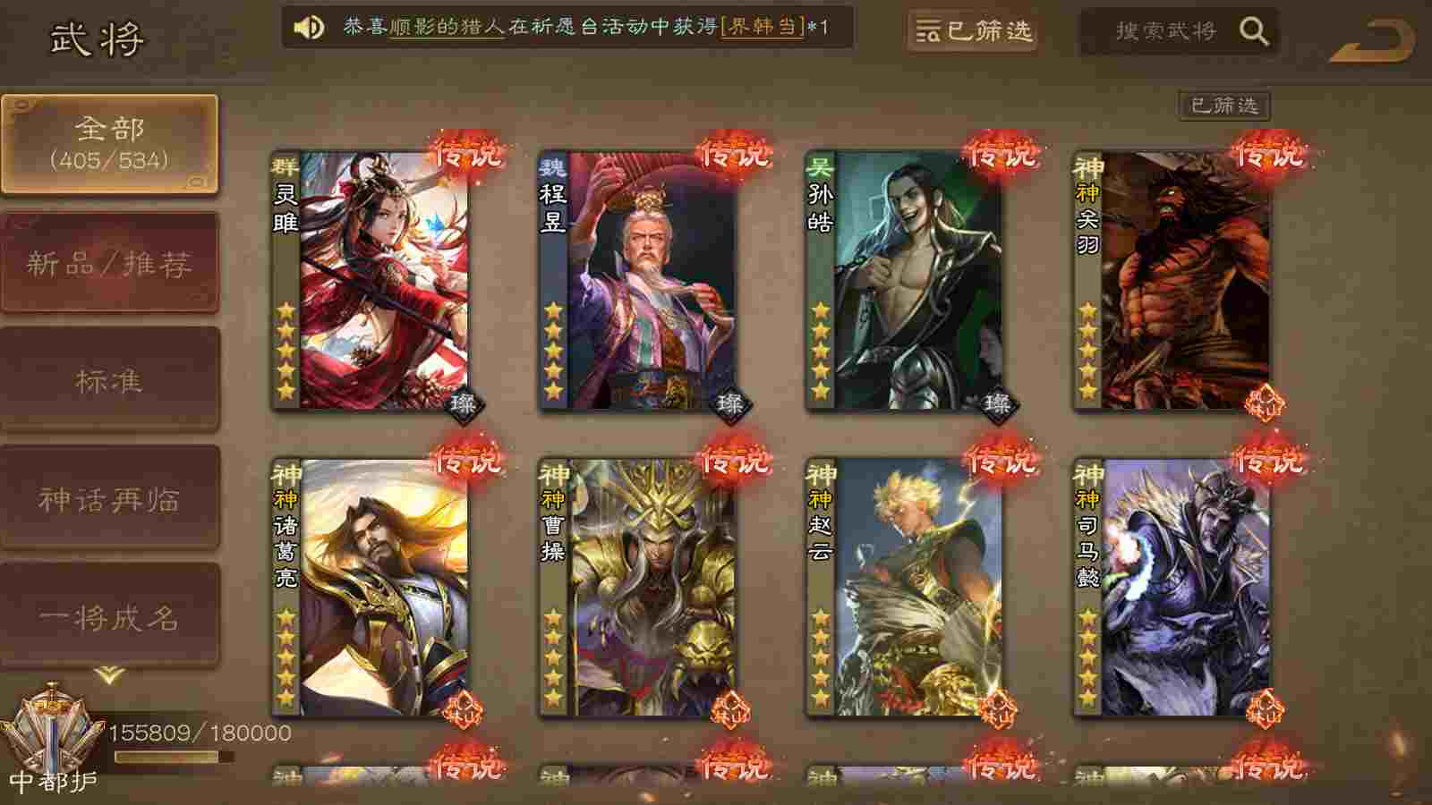 商品编号A064 V9+张琪瑛(动),神张角,杜夫人(动),谋袁绍(动),神灯齐全,界灯只缺界荀彧,总武将405,五阶278,皮肤810,动23 包裹:玉玺25,灵宝276,祈福灯17,官阶中都护15.5w