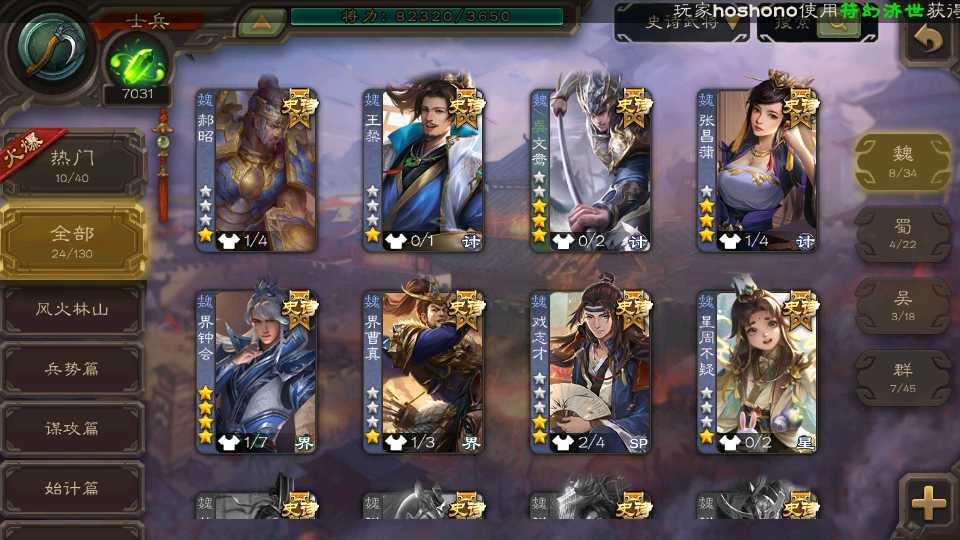 (魏国):文鸯,戏志才,界钟会,张昌蒲,郝昭,王粲,界曹真,星周不疑