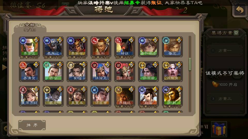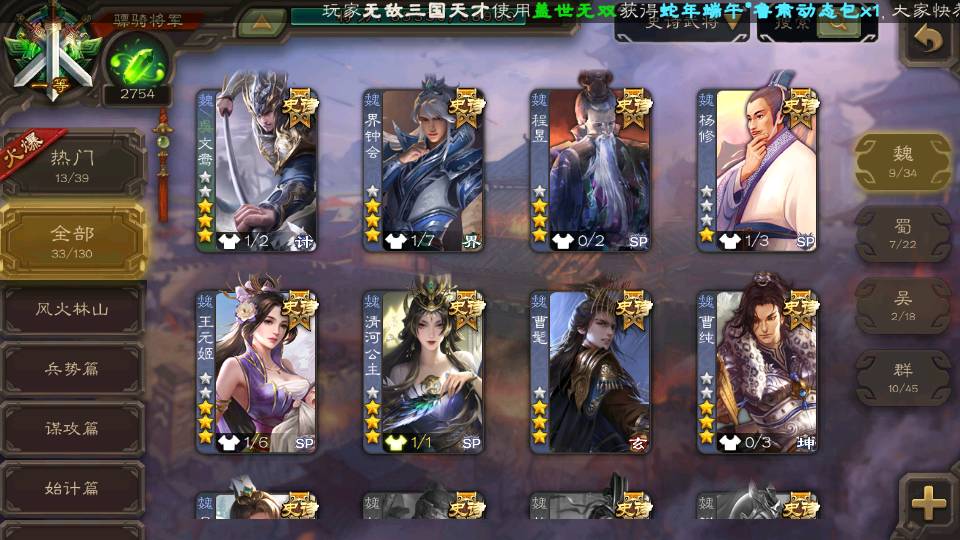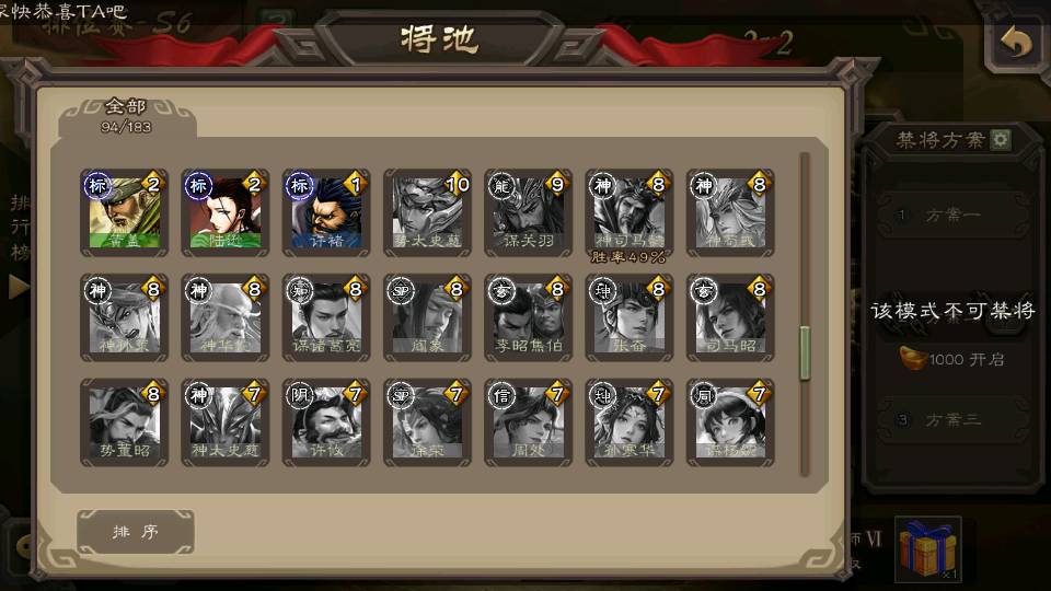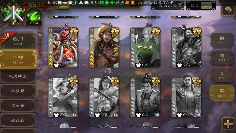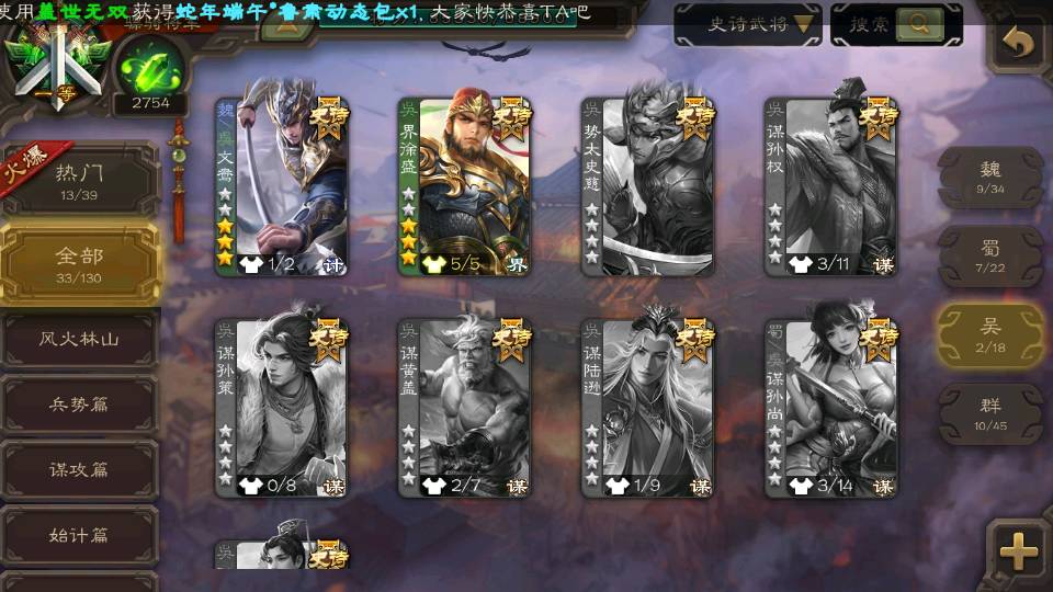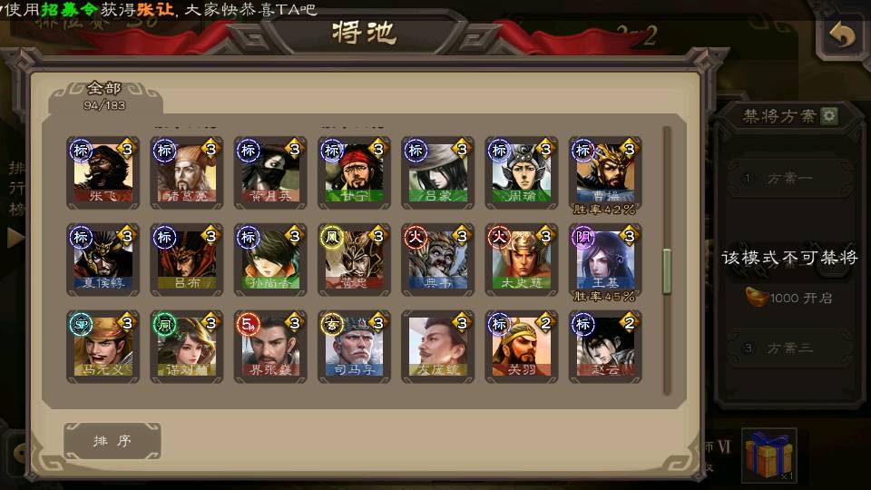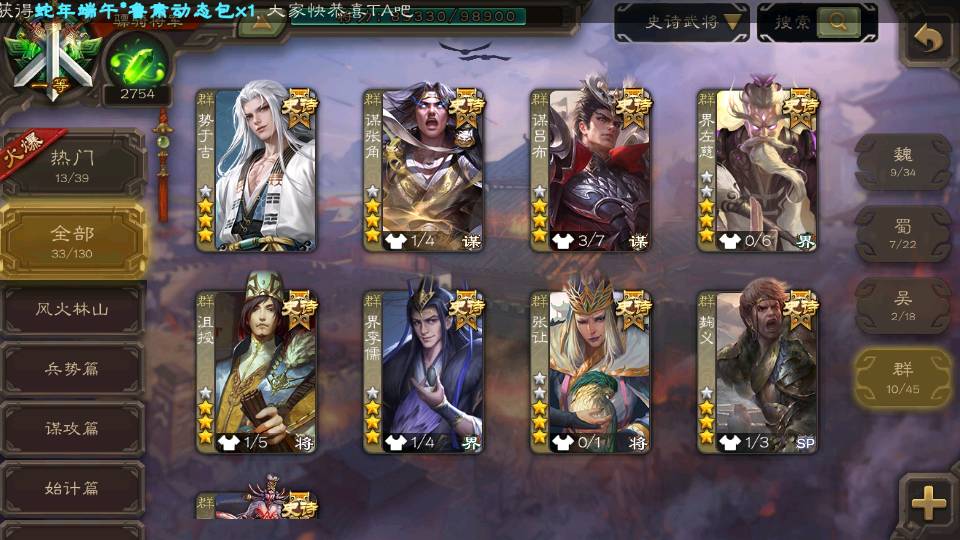 (群雄):界左慈,麴义,星董卓,张让,界李儒,谋吕布,势于吉,谋张角,沮授,兀突骨