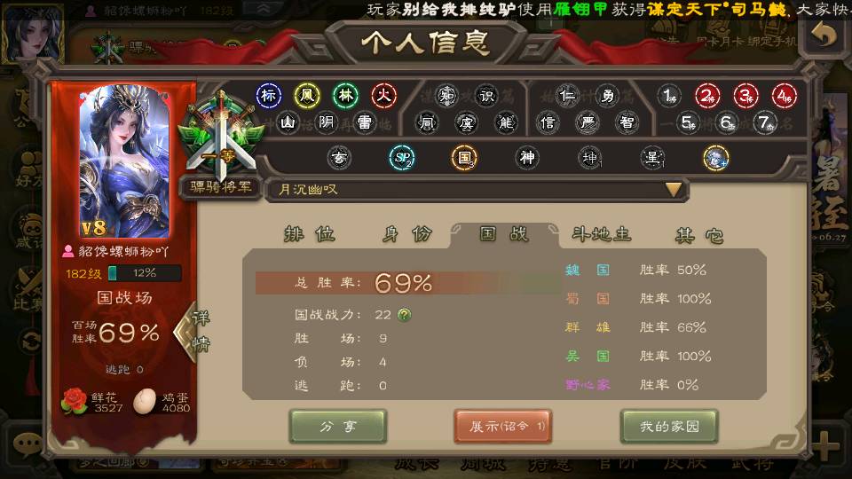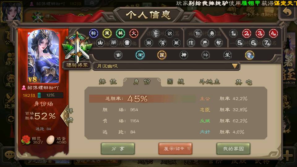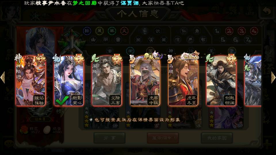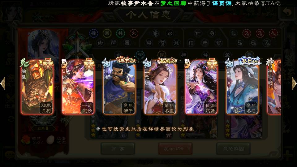 商品编号21854 全部皮肤307,动态皮肤20,全部武将298,排位武将94,国战武将79,史诗武将33,麴义动皮,文鸯动皮