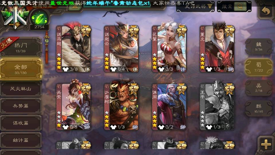 (蜀国):谋赵云,花鬘,沙摩柯,谯周,谋马超,关索,董允
