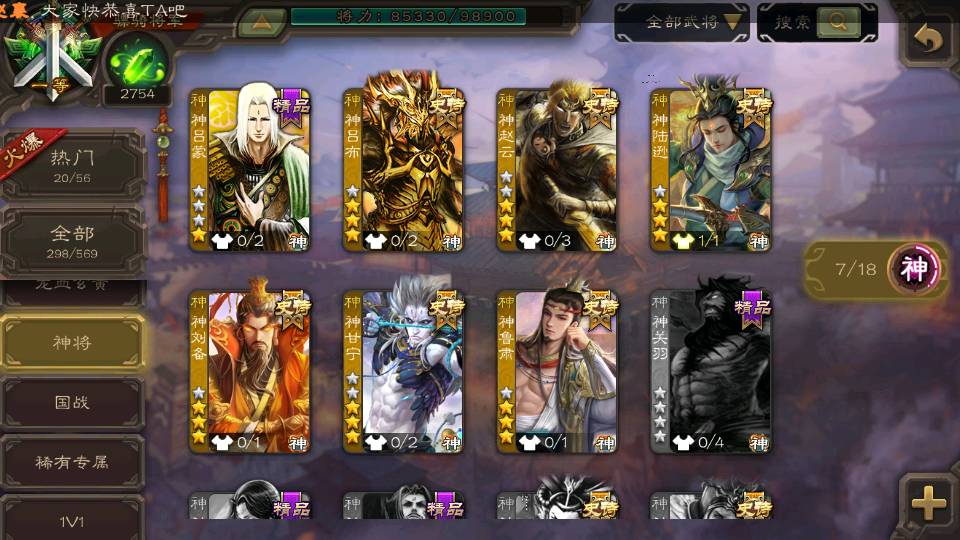 (神将):神甘宁,神鲁肃,神陆逊,神赵云,神吕布,神刘备