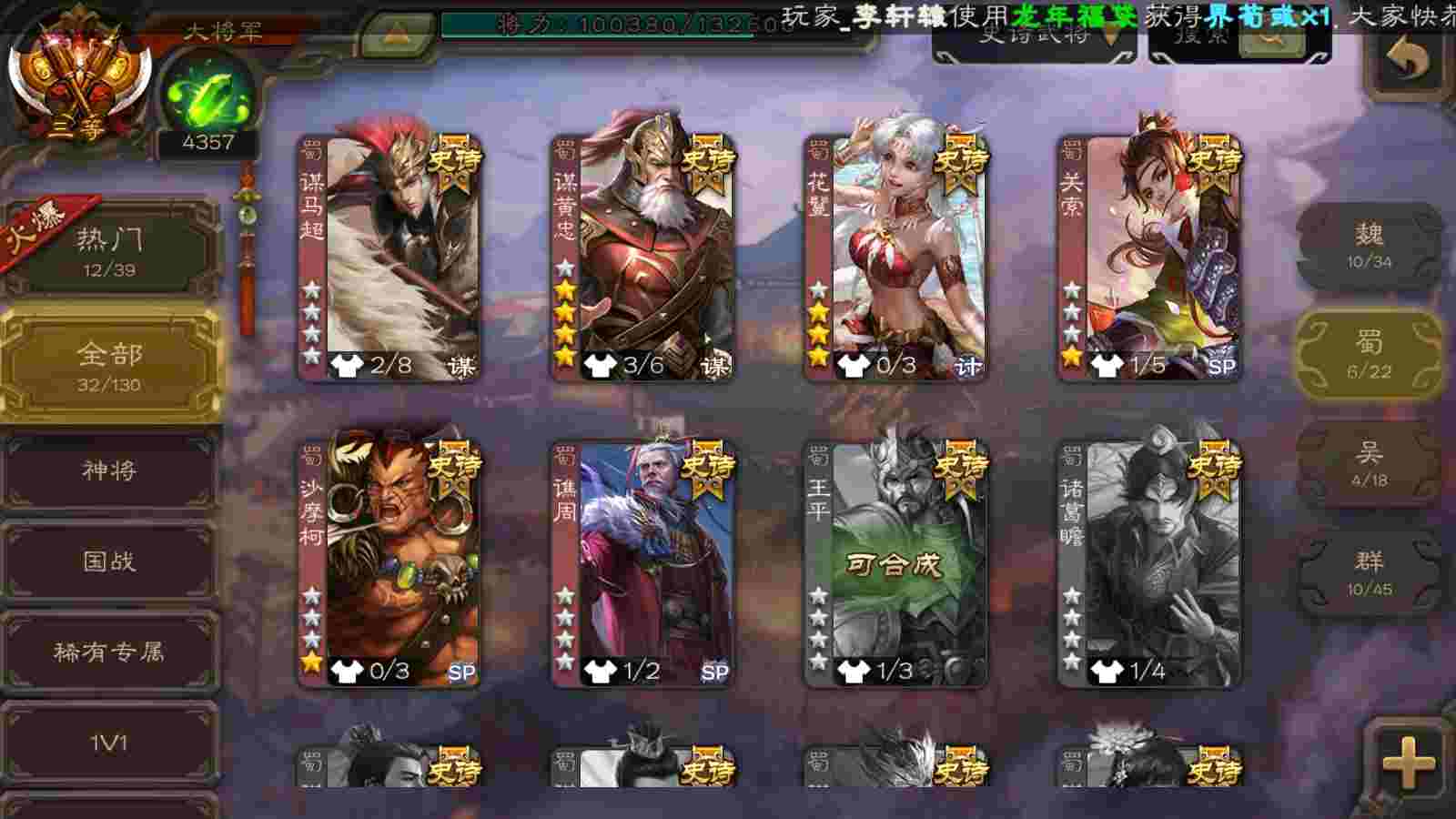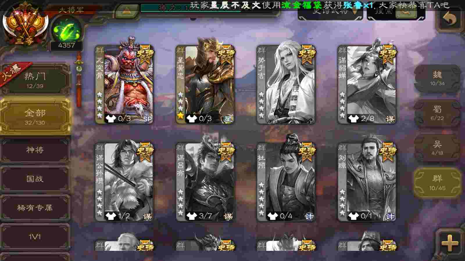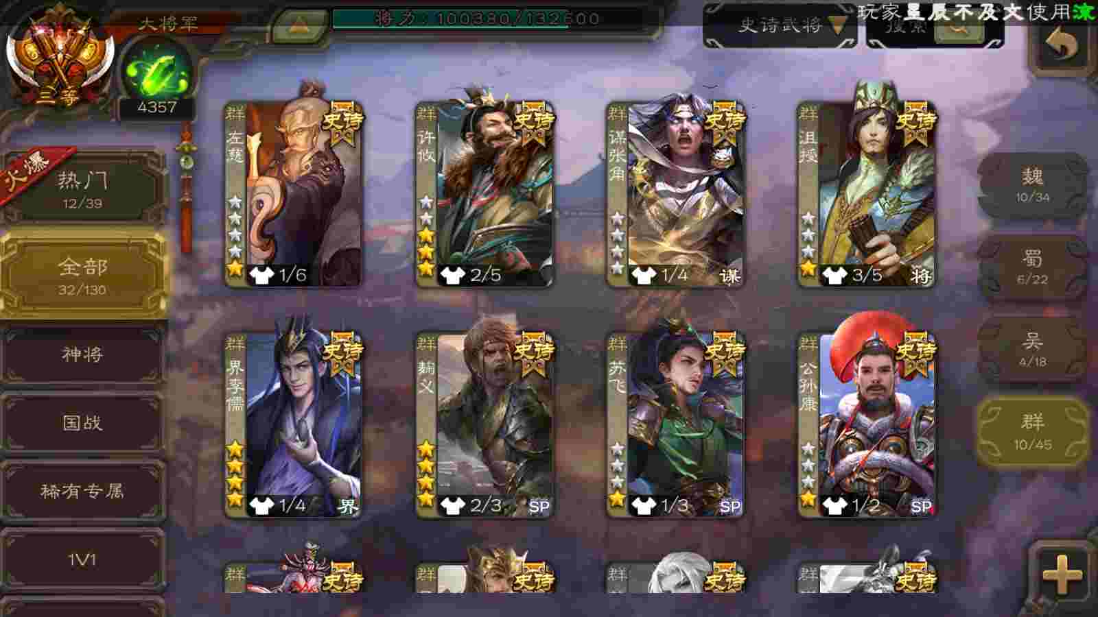 (群雄):麴义,许攸,界李儒,苏飞,谋张角,公孙康,星黄忠,左慈,沮授,兀突骨