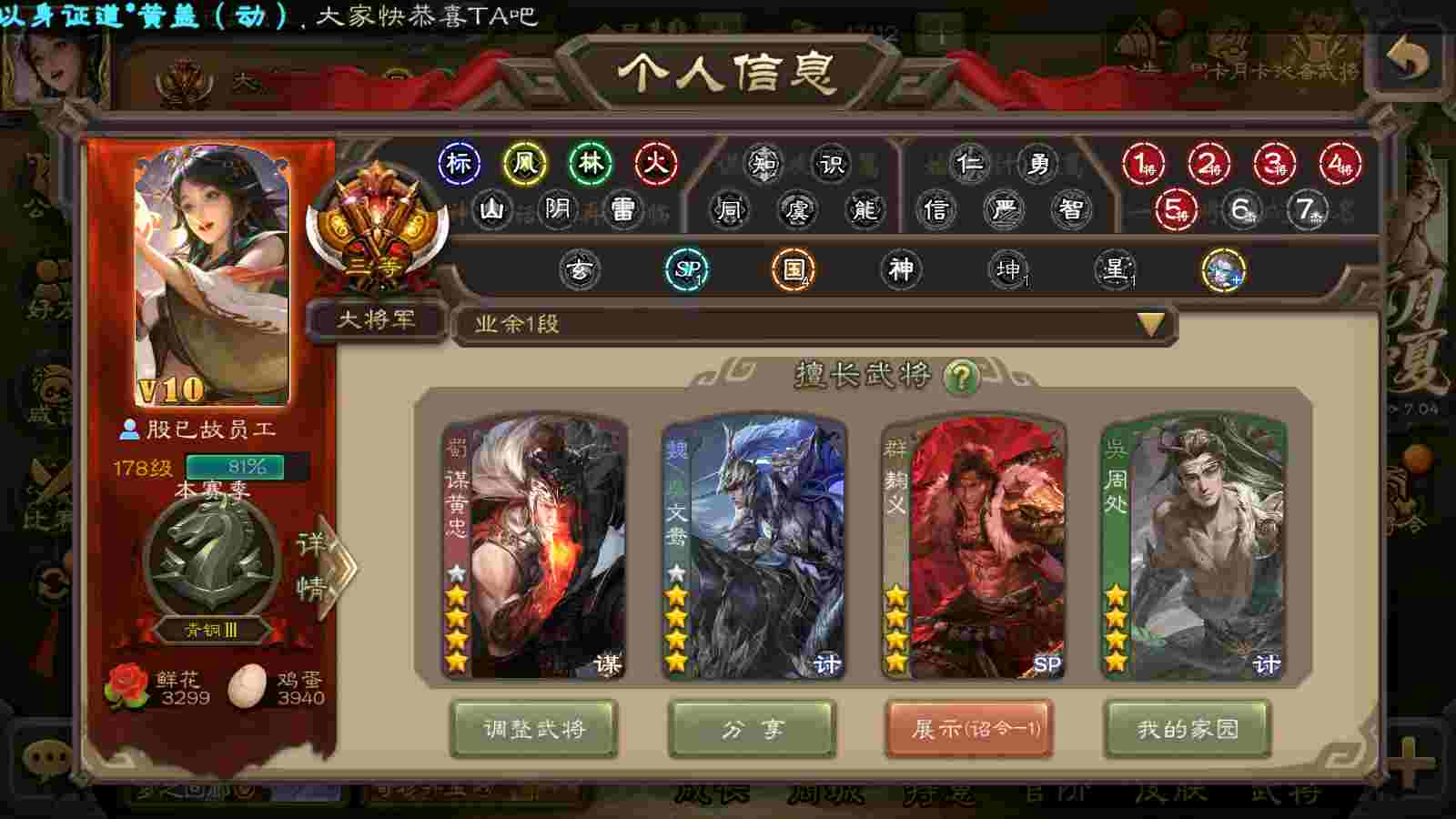 商品编号21900 全部皮肤398,动态皮肤29,全部武将311,排位武将92,国战武将88,史诗武将32,友徐庶,文鸯双回廊,谋黄忠动皮,许攸动皮,麴义动皮,王元姬动皮,小乔手办,元宝1.7w,雁翎6.7w,将魂4.3k