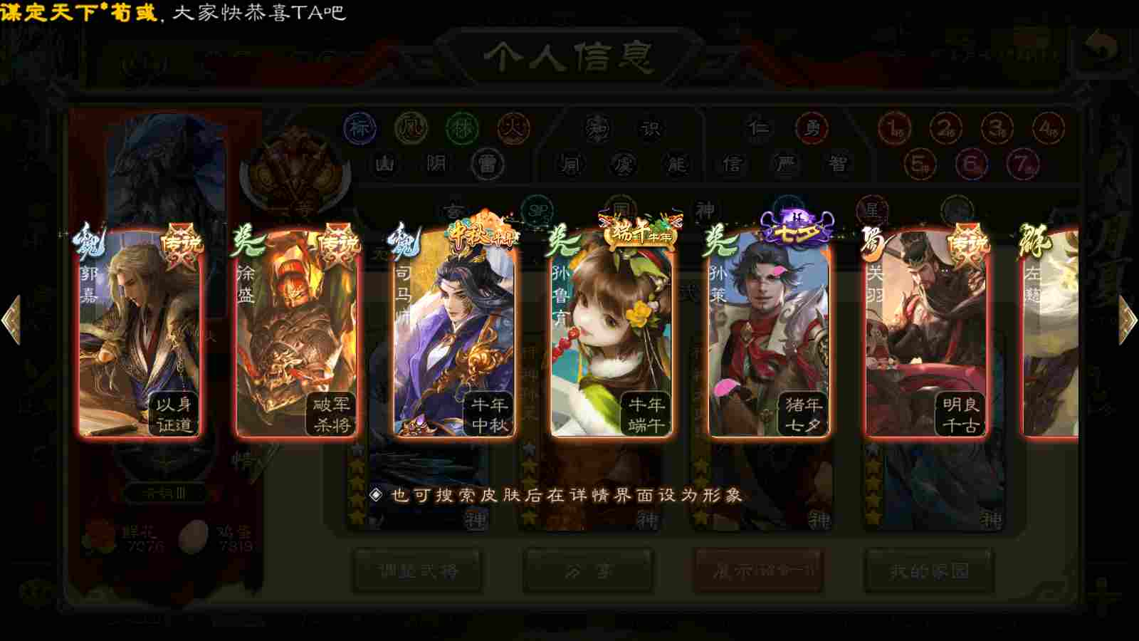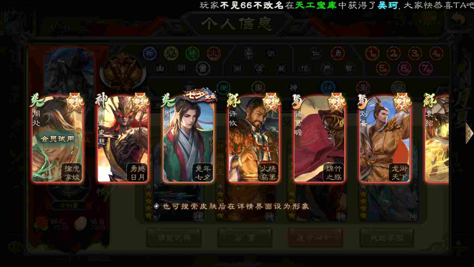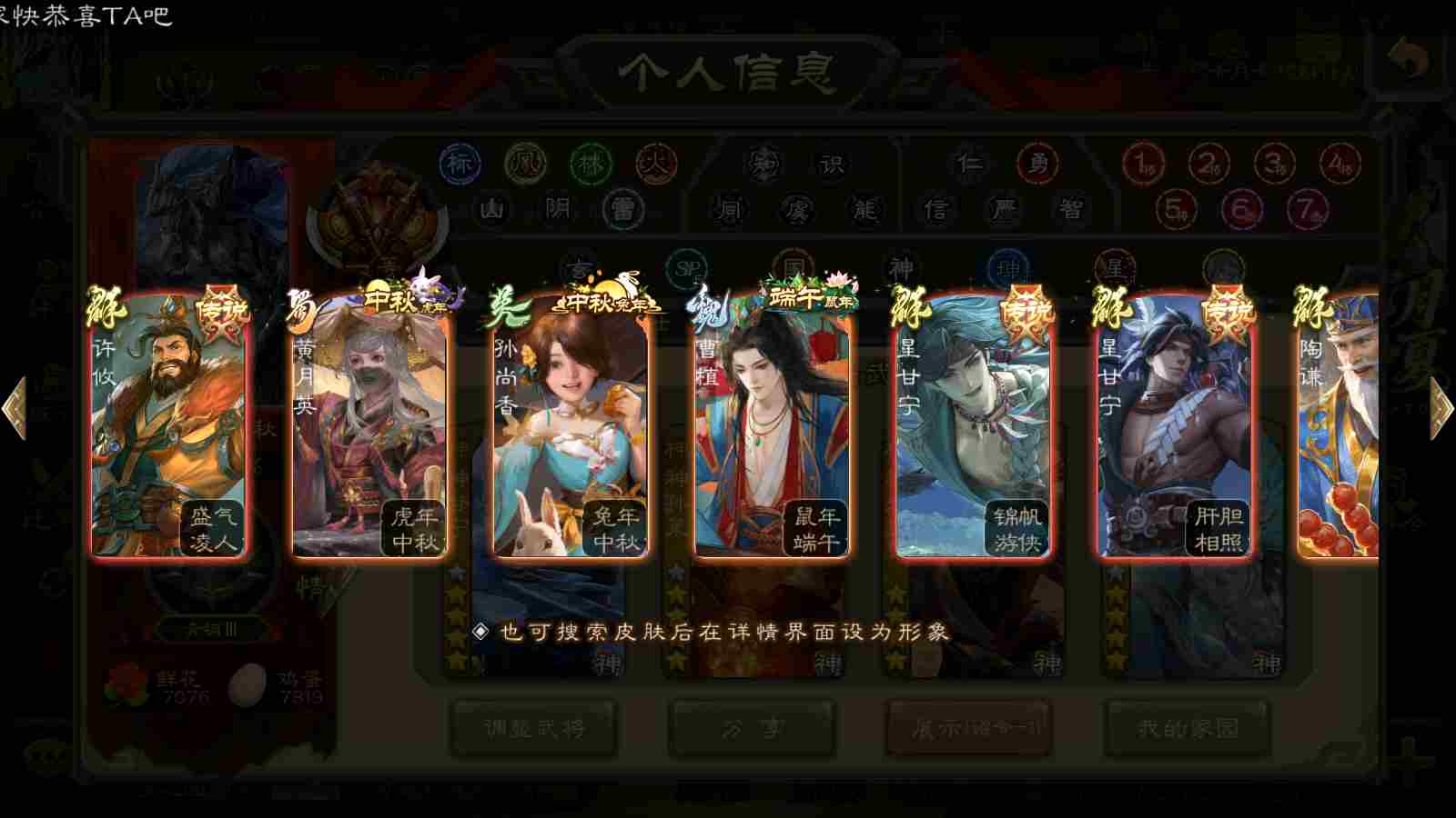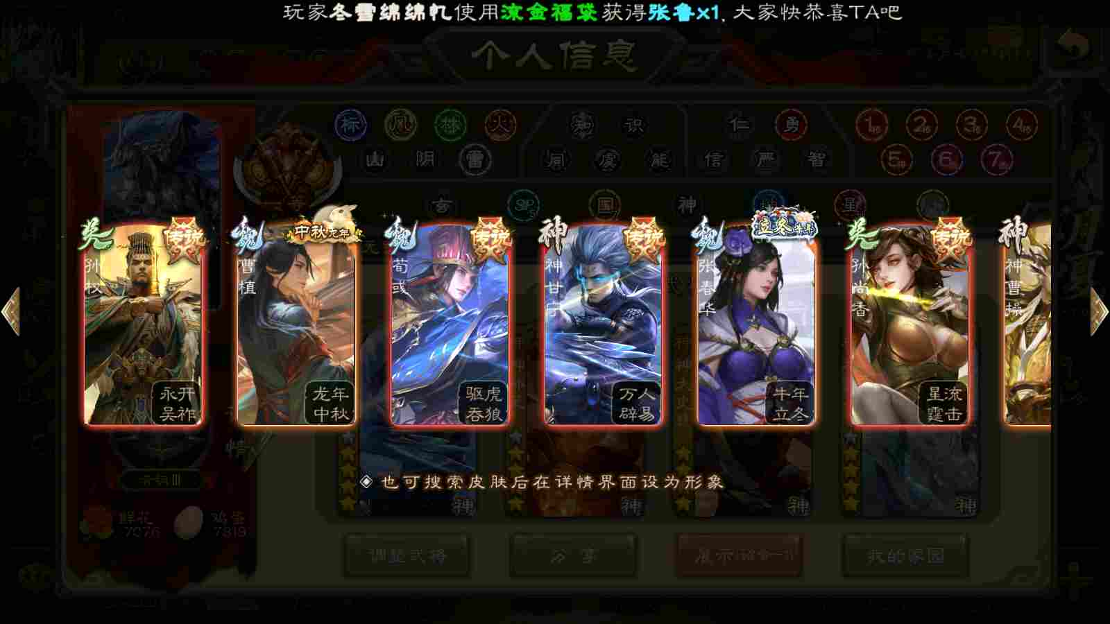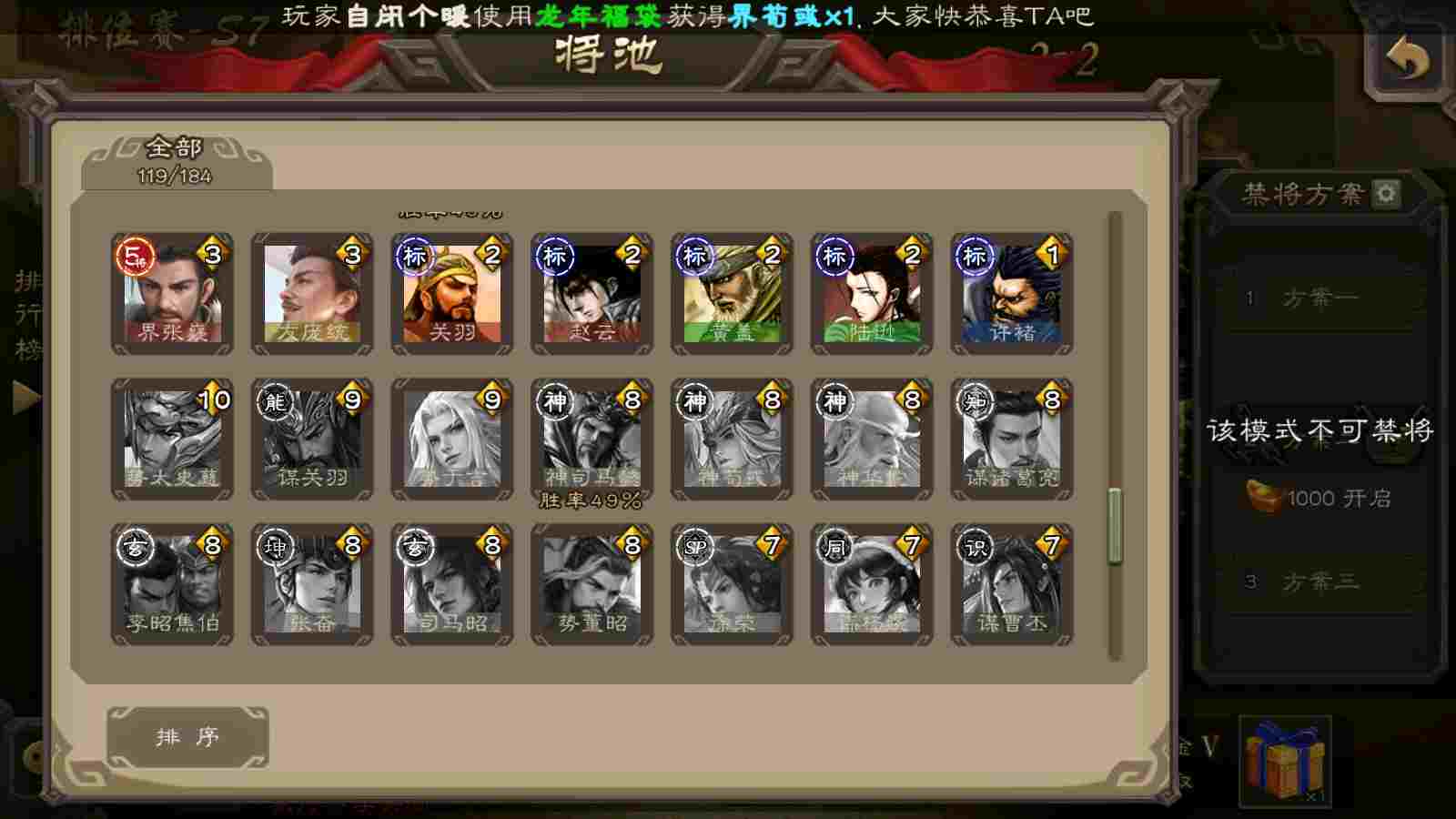 (群雄):刘焉,杨彪,杜预,界左慈,麴义,许攸,张仲景,张让,界李儒,苏飞,星甘宁,谋张角,陶谦,审配,公孙康,郑玄,星黄忠,左慈,沮授,兀突骨