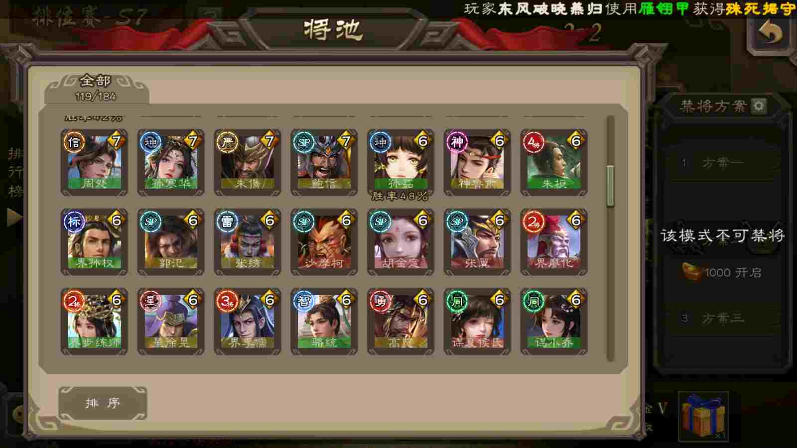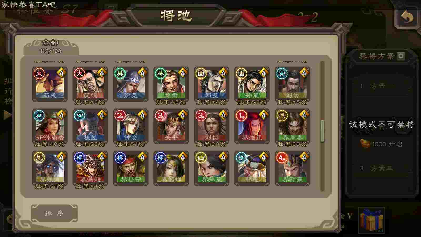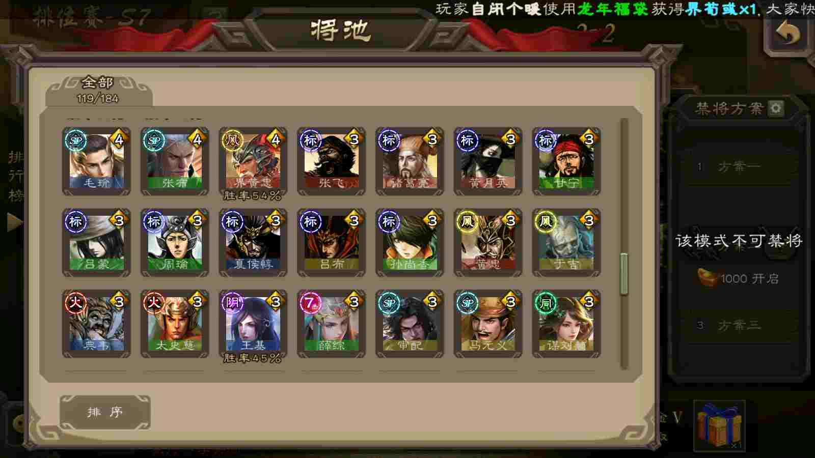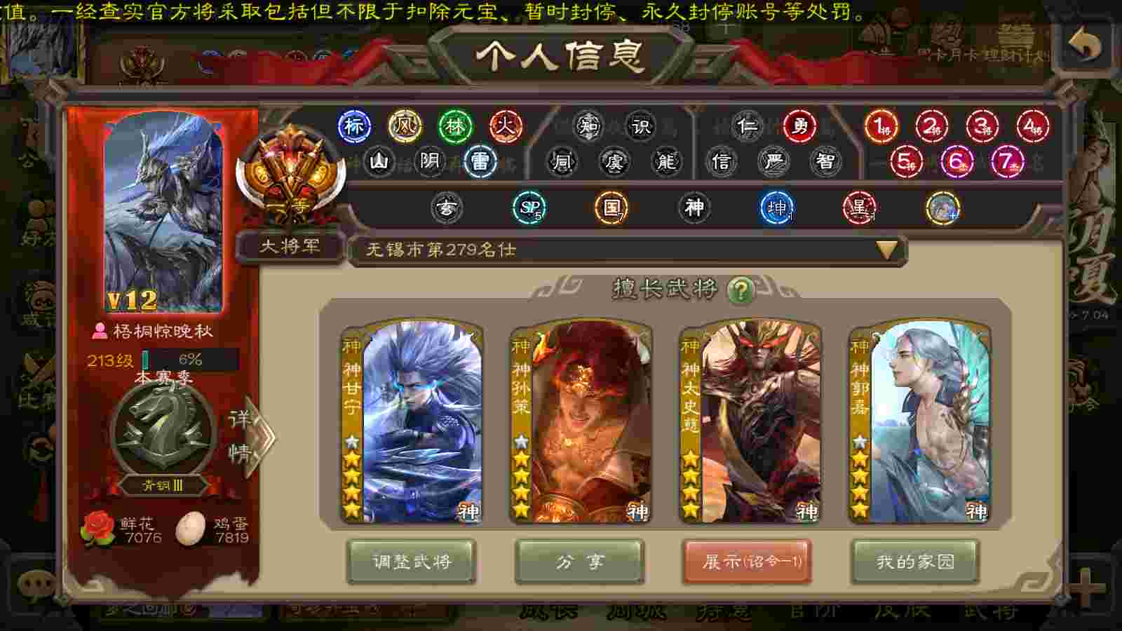 (群雄):刘焉,杨彪,杜预,界左慈,麴义,许攸,张仲景,张让,界李儒,苏飞,星甘宁,谋张角,陶谦,审配,公孙康,郑玄,星黄忠,左慈,沮授,兀突骨