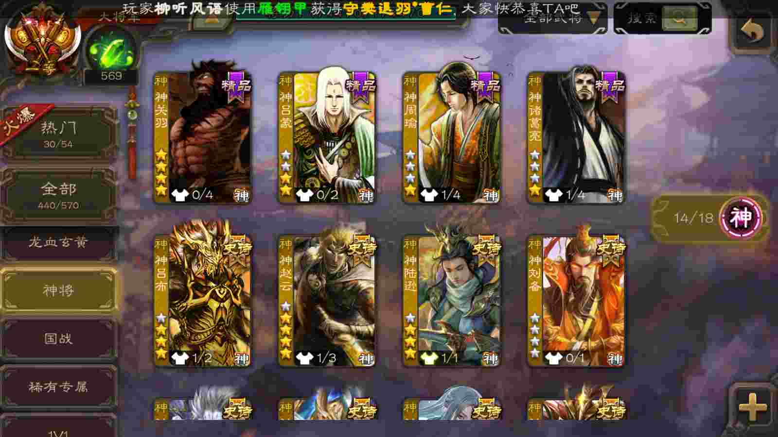 (神将):神郭嘉,神甘宁,神孙策,神鲁肃,神太史慈,神陆逊,神赵云,神吕布,神刘备,神张辽