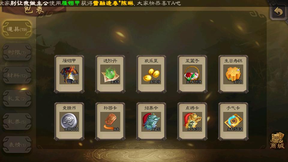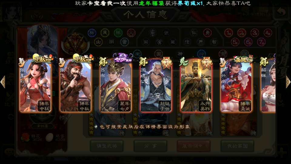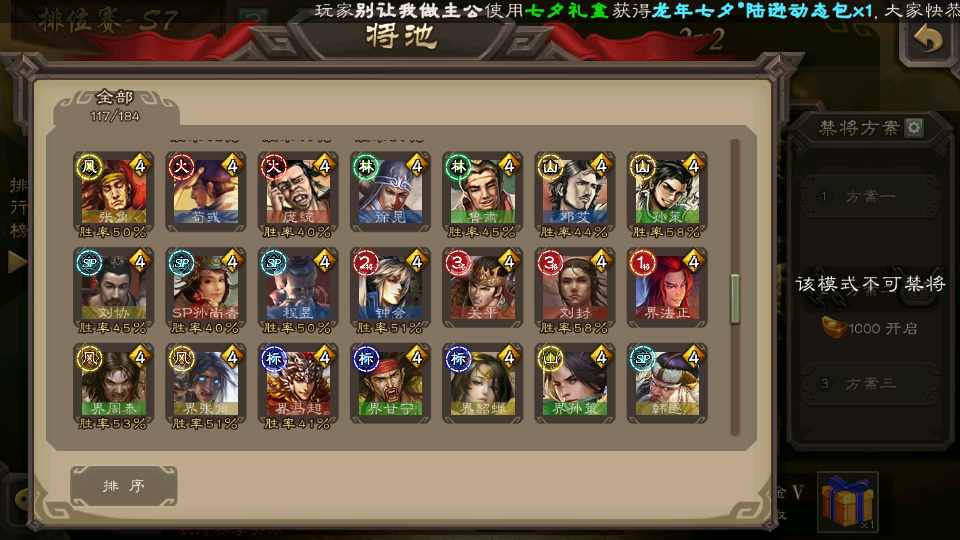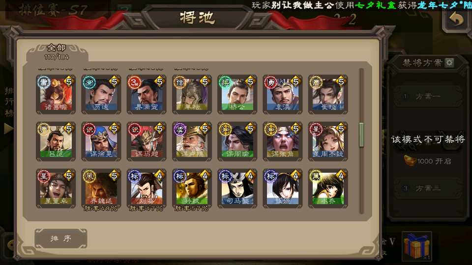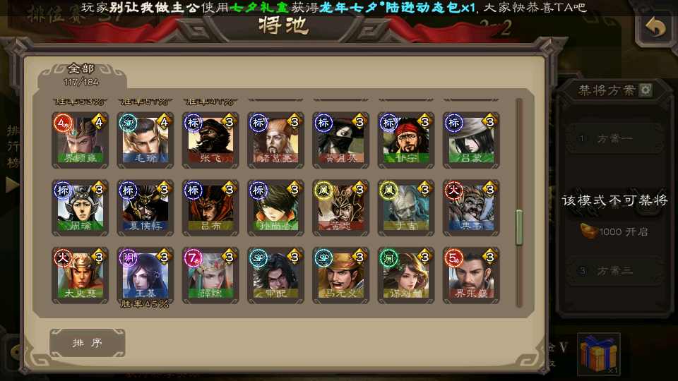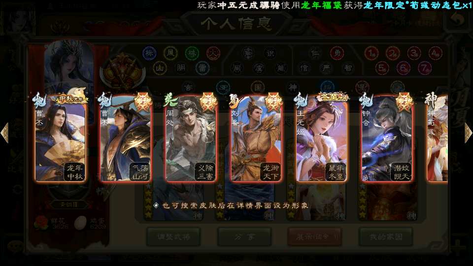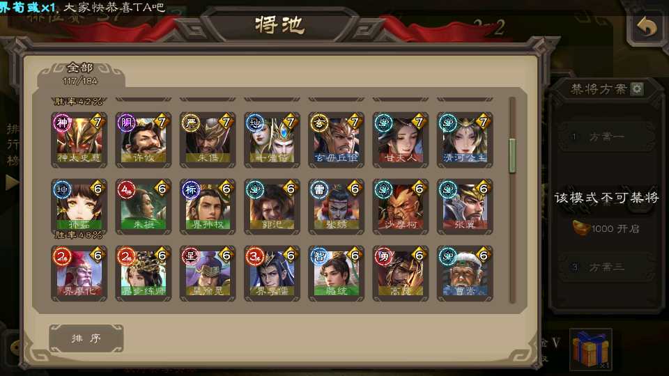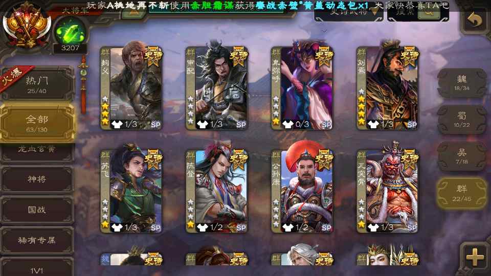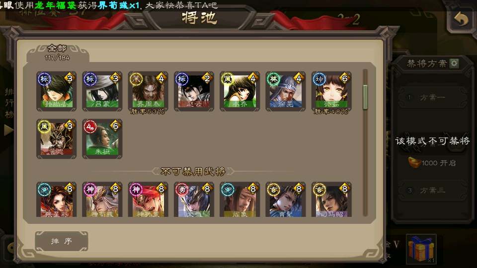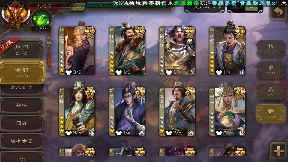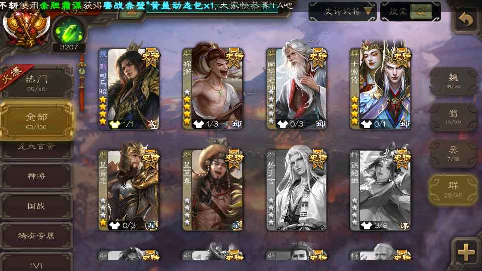 (群雄):刘焉,杜预,祢衡,十常侍,界沮授,南华老仙,麴义,司马昭,审配,许攸,张让,界李儒,苏飞,卑弥呼,谋张角,公孙康,星董卓,星黄忠,陈登,左慈,沮授,兀突骨