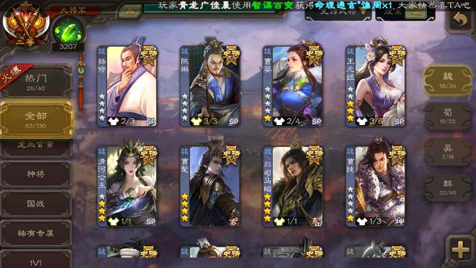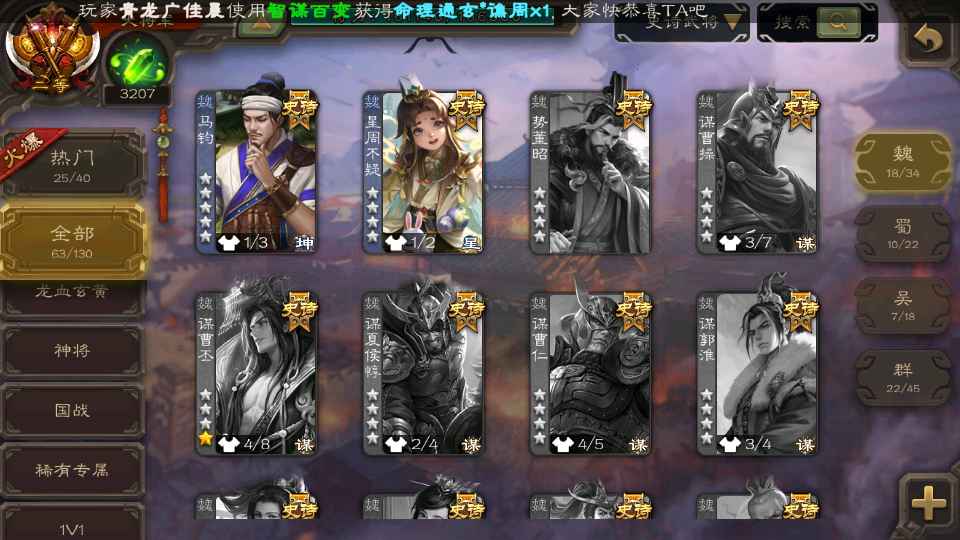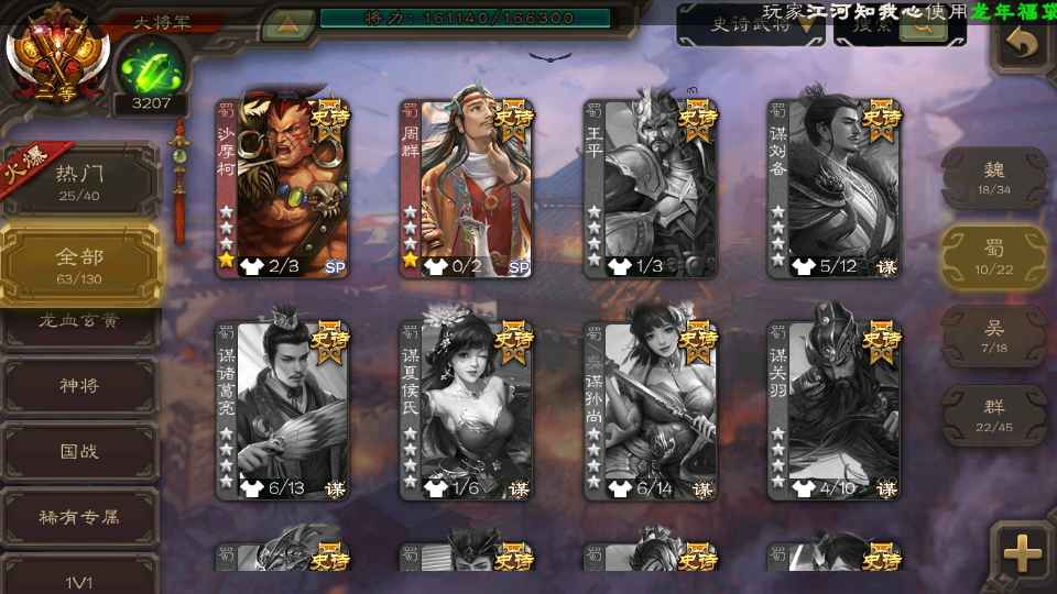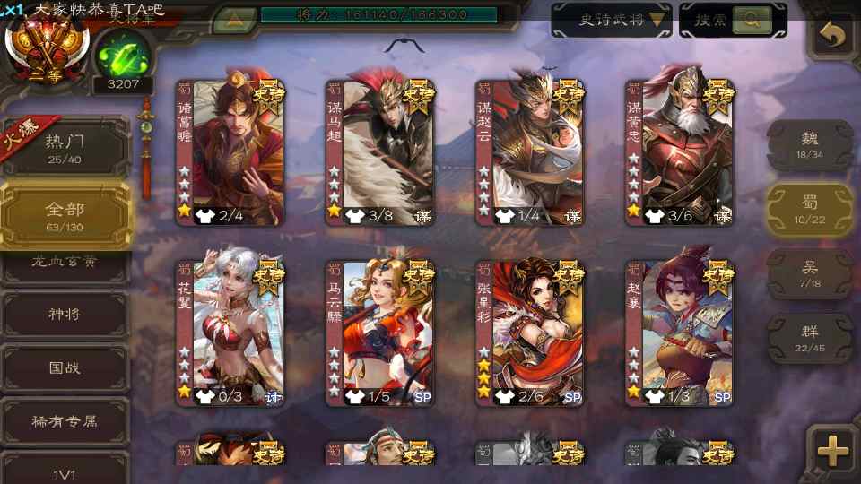 (蜀国):谋黄忠,诸葛瞻,谋赵云,周群,沙摩柯,花鬘,谋马超,张星彩,马云騄,赵襄