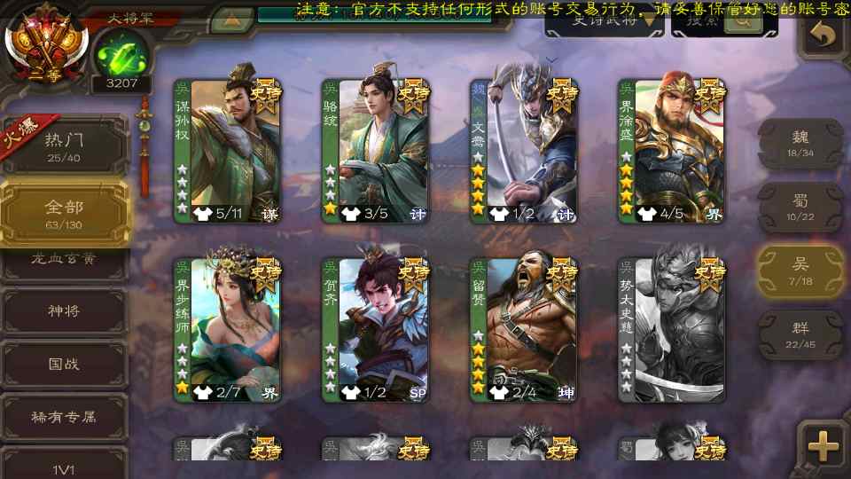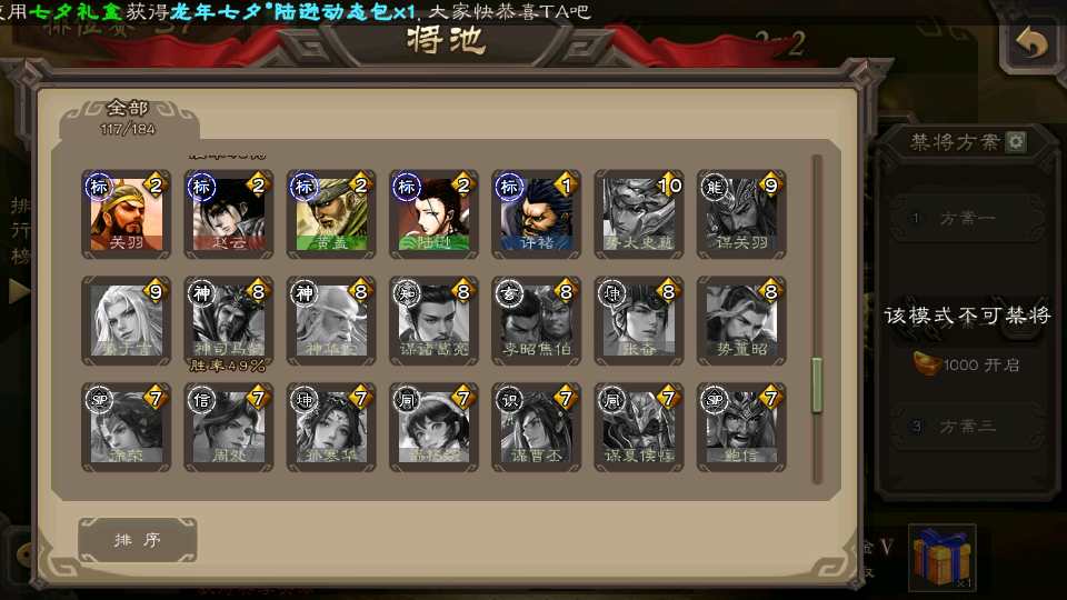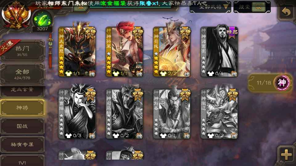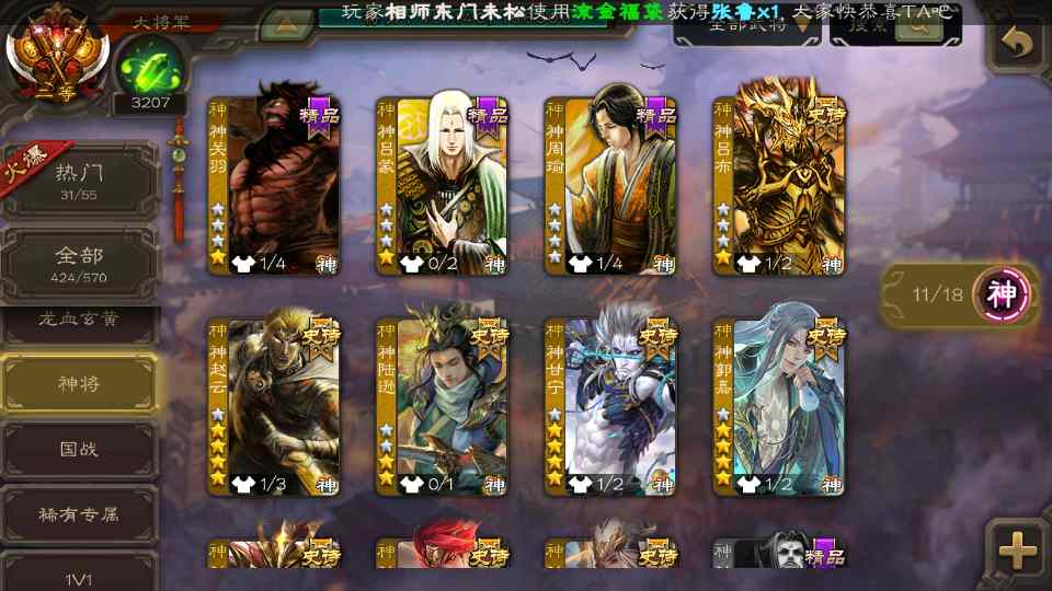 (神将):神荀彧,神郭嘉,神甘宁,神孙策,神太史慈,神陆逊,神赵云,神吕布