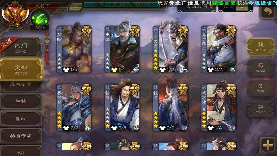 (魏国):曹婴,马钧,王元姬,曹髦,文鸯,戏志才,界钟会,清河公主,界于禁,郝昭,王凌,星周不疑,程昱,曹纯,杨修,陈琳,嵇康