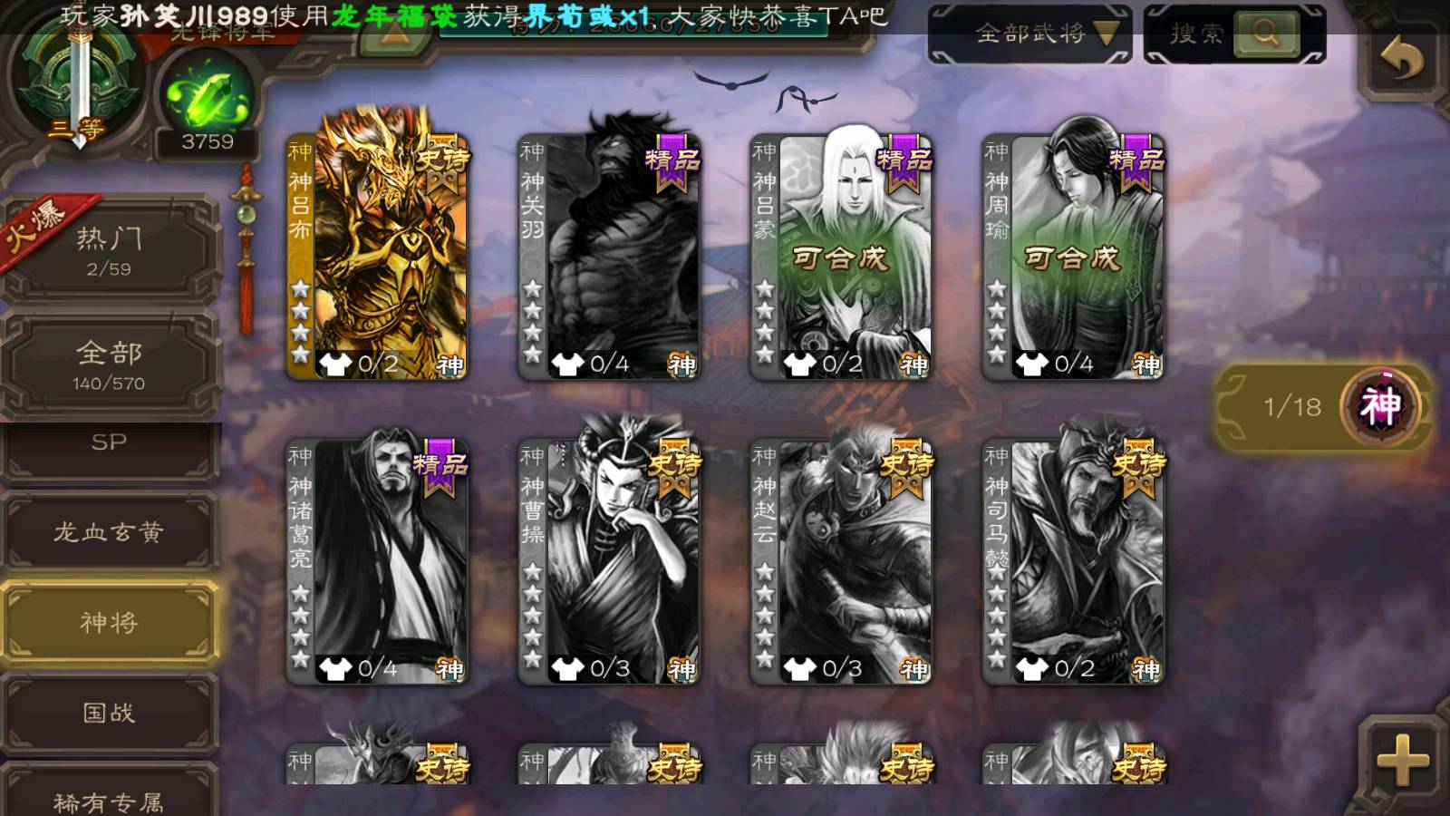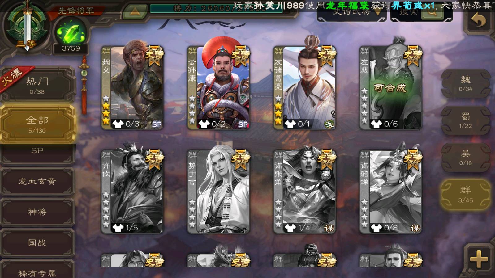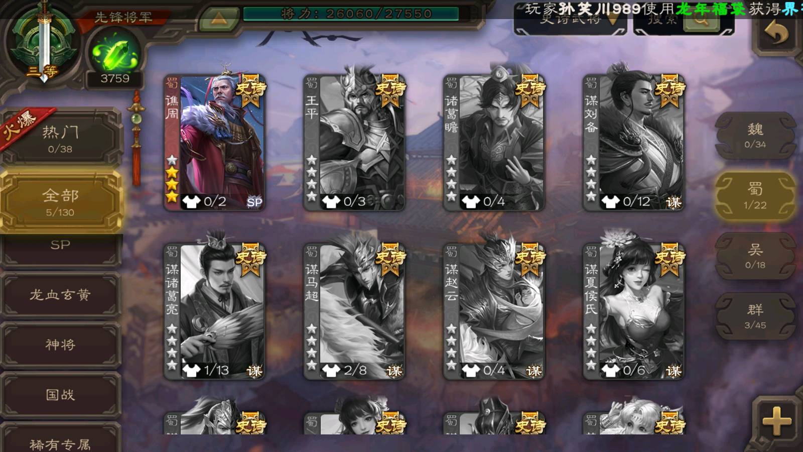 商品编号21927 全部皮肤108,动态皮肤3,全部武将140,排位武将48,国战武将55,史诗武将5,将魂3.7k