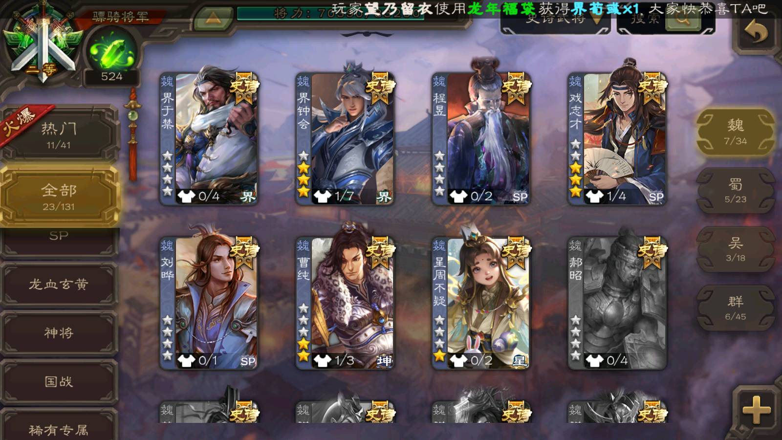 (魏国):戏志才,界钟会,界于禁,星周不疑,程昱,曹纯,刘晔