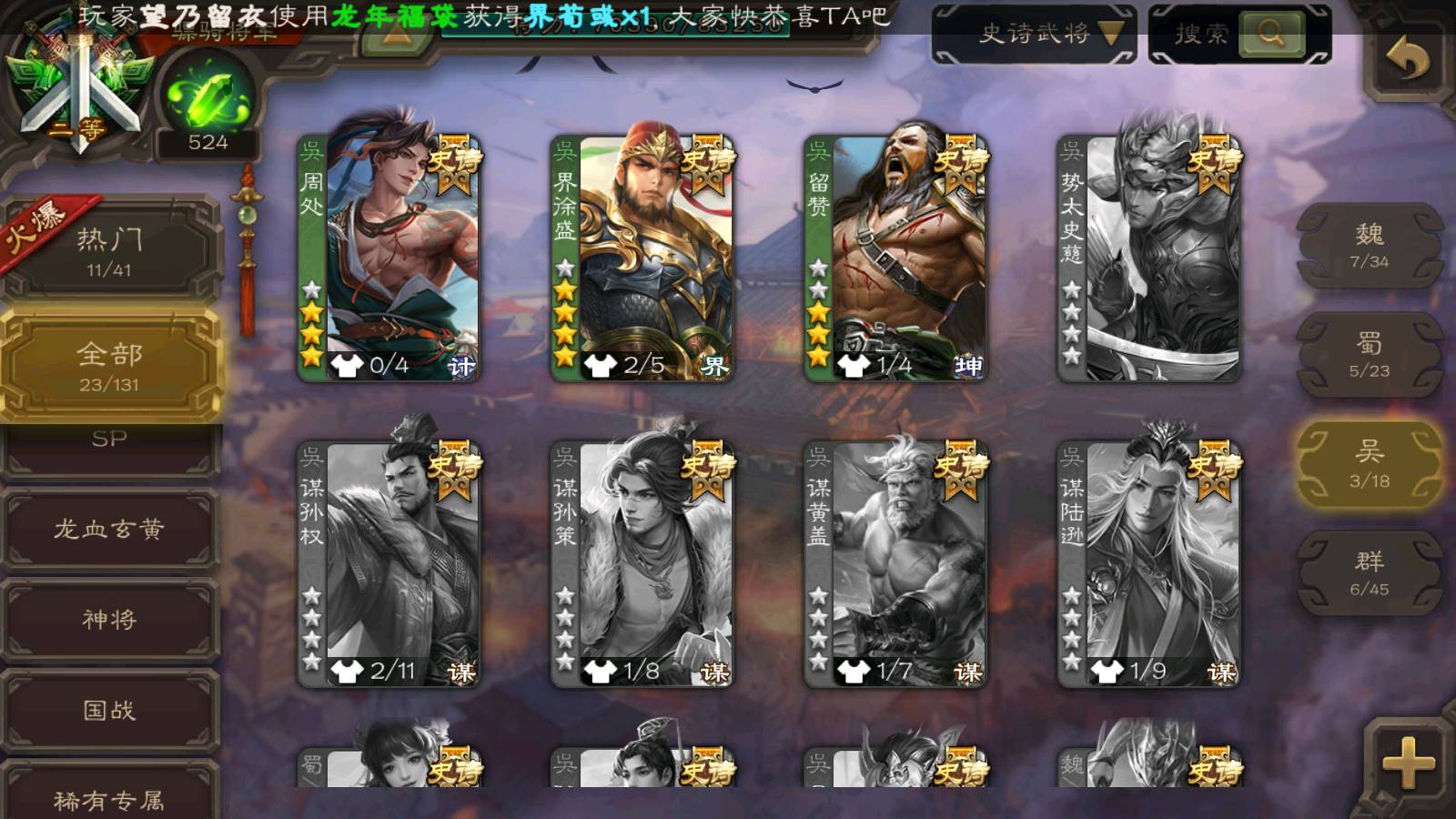 (群雄):界左慈,南华老仙,麴义,许攸,界沮授,兀突骨