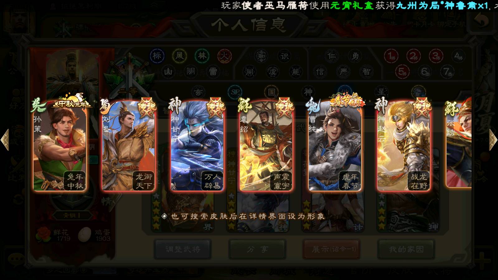商品编号21932 全部皮肤263,动态皮肤13,全部武将269,排位武将73,国战武将81,史诗武将23