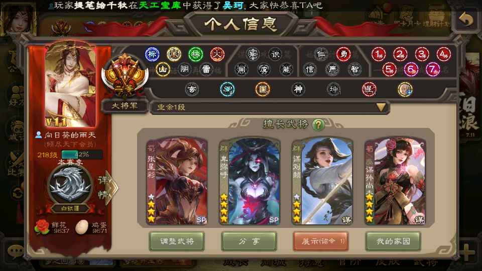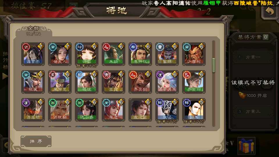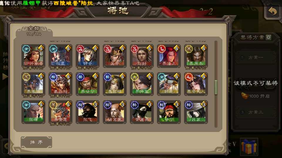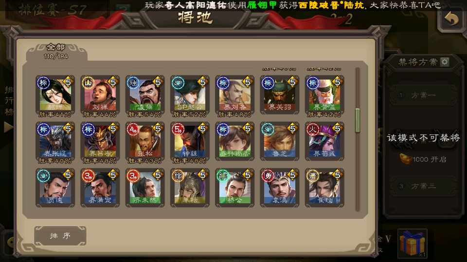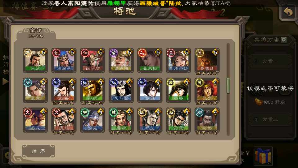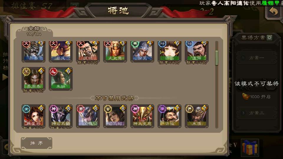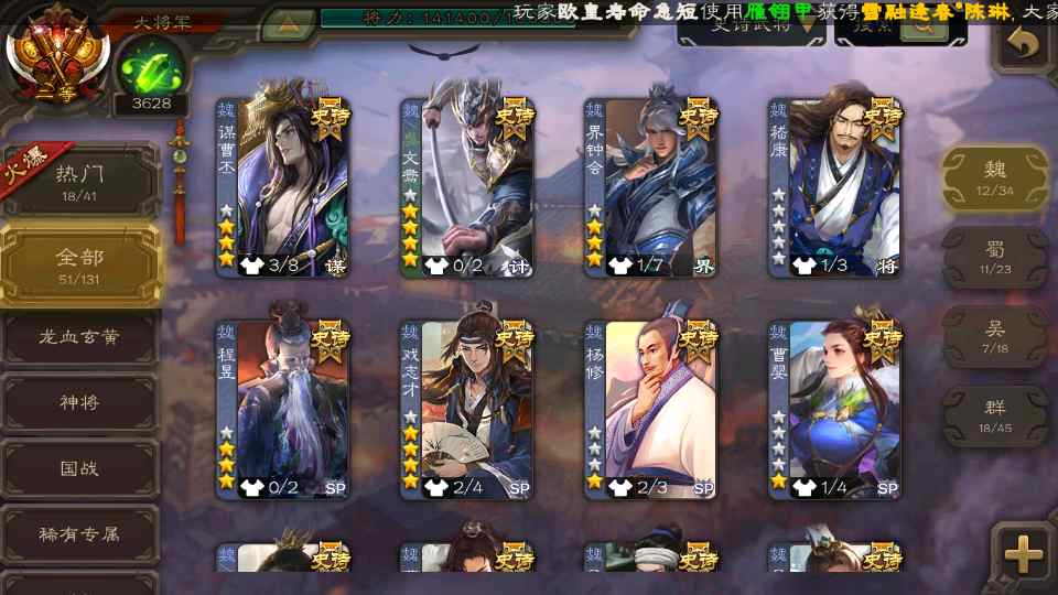 (群雄):祢衡,界左慈,张仲景,南华老仙,麴义,许攸,司马昭,裴秀,张让,苏飞,卑弥呼,审配,公孙康,星黄忠,陈登,左慈,沮授,兀突骨