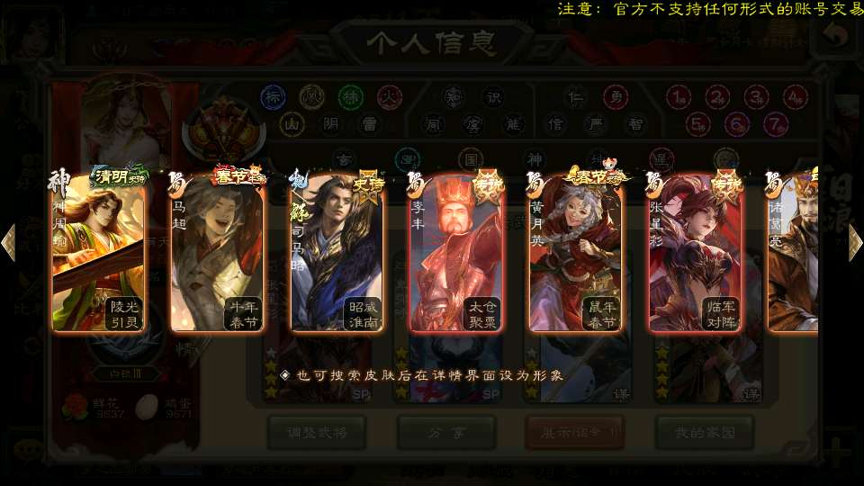 商品编号21935 全部皮肤460,动态皮肤43,全部武将405,排位武将110,国战武将94,史诗武将51,神司马懿动皮,元宝1.3w,将魂3.6k