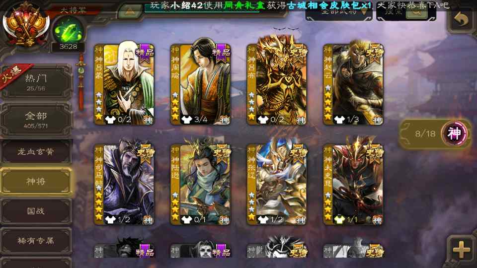 (神将):神司马懿,神太史慈,神陆逊,神赵云,神吕布,神张辽