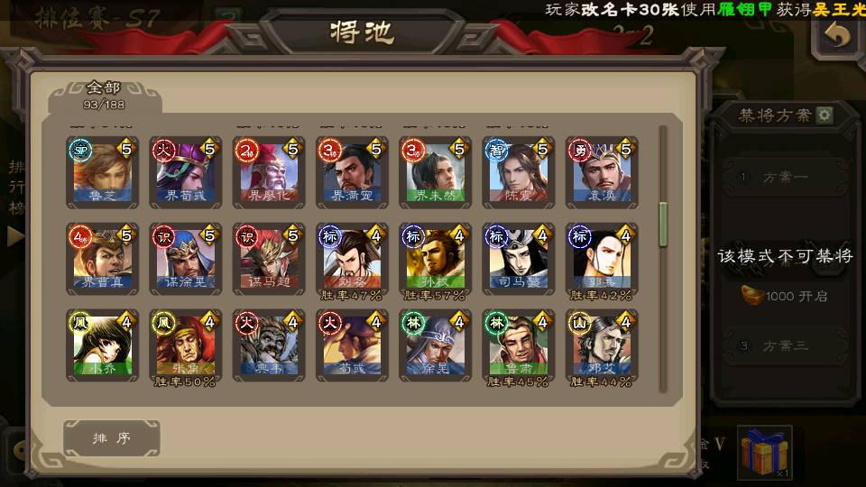 (群雄):杜预,界左慈,皇甫嵩,南华老仙,张让,许攸,公孙康,陶谦,星黄忠,审配,左慈,沮授,兀突骨