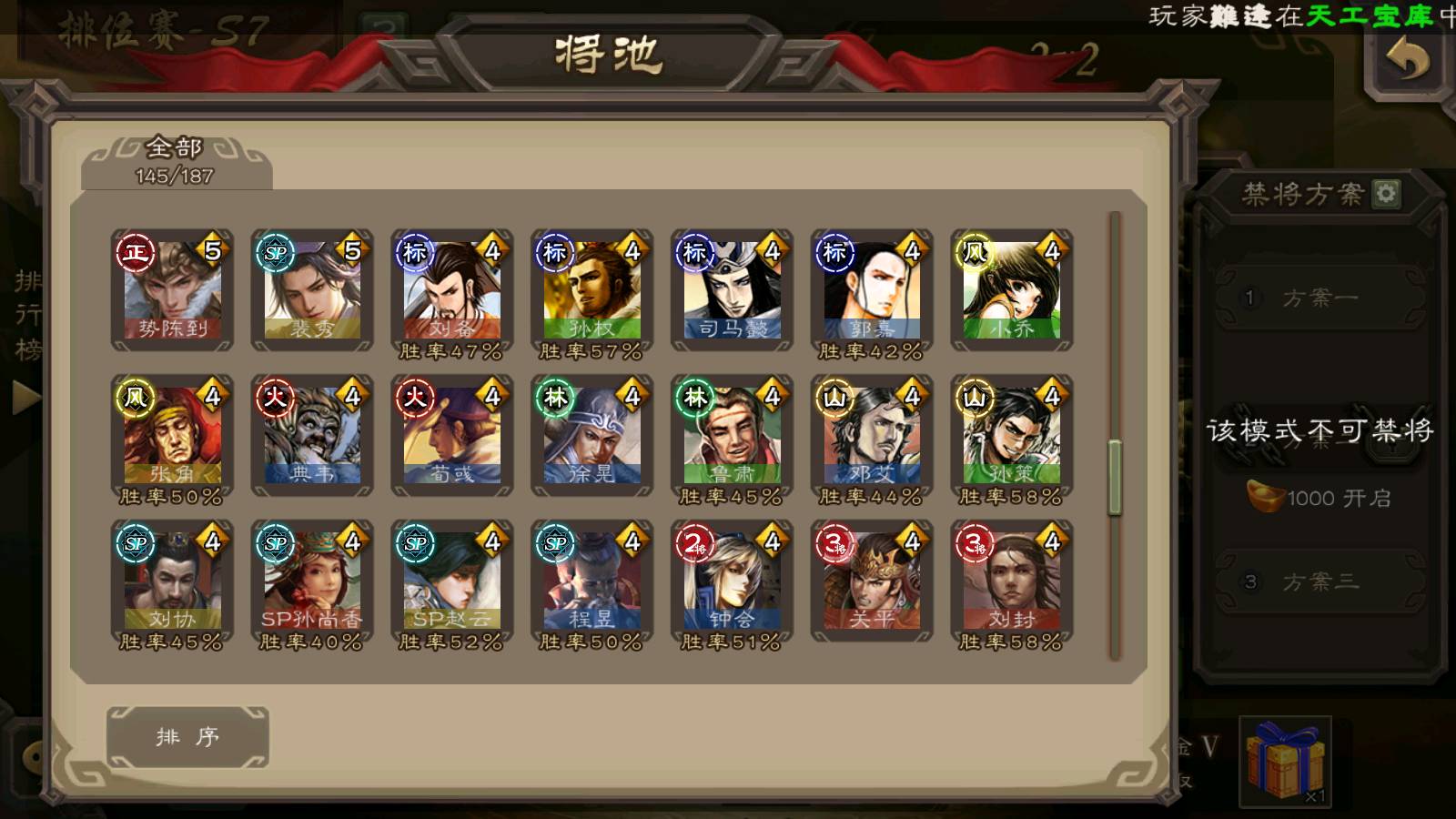 (群雄):刘焉,杜预,祢衡,界左慈,界沮授,南华老仙,麴义,许攸,十常侍,星董卓,谋貂蝉,司马昭,张让,界李儒,苏飞,庞德公,星甘宁,张琪瑛,裴秀,卑弥呼,士燮,谋张角,王允,公孙康,陶谦,审配,星黄忠,司马徽,左慈,沮授,兀突骨
