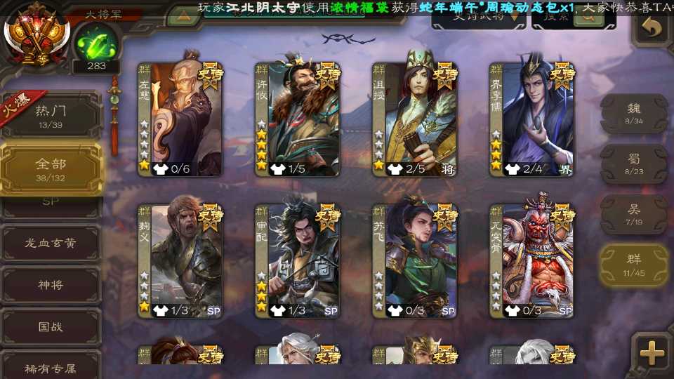 (群雄):祢衡,南华老仙,麴义,许攸,界李儒,苏飞,审配,星黄忠,左慈,沮授,兀突骨