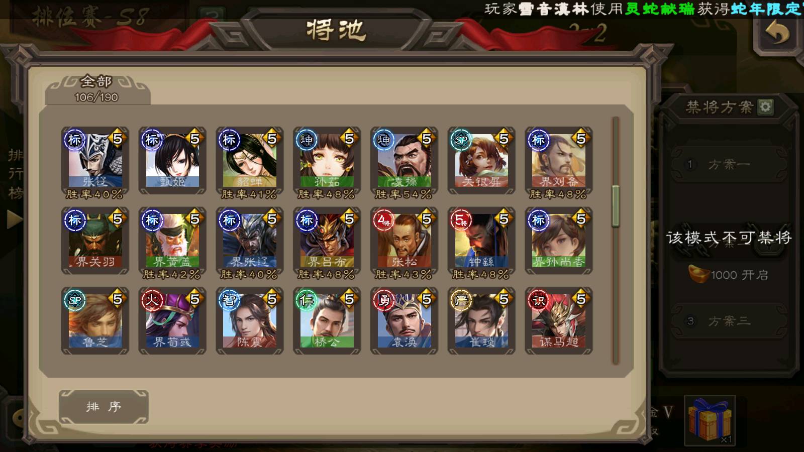 (群雄):杜预,南华老仙,十常侍,谋貂蝉,界左慈,司马昭,谋公孙瓒,麴义,许攸,界李儒,苏飞,谋张角,公孙康,郑玄,星黄忠,左慈,沮授,兀突骨