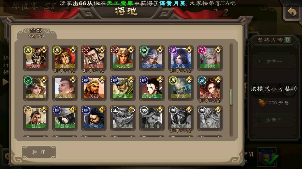 (群雄):杨彪,杜预,祢衡,界左慈,南华老仙,麴义,谋貂蝉,司马昭,张让,界李儒,势于吉,张琪瑛,卑弥呼,王允,郑玄,星黄忠,左慈,沮授,兀突骨