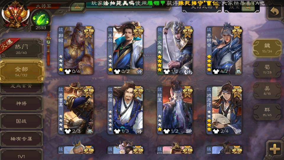 (魏国):王元姬,文鸯,戏志才,界钟会,曹髦,SP司马昭,王朗,郝昭,王粲,界曹真,星周不疑,程昱,曹纯,嵇康