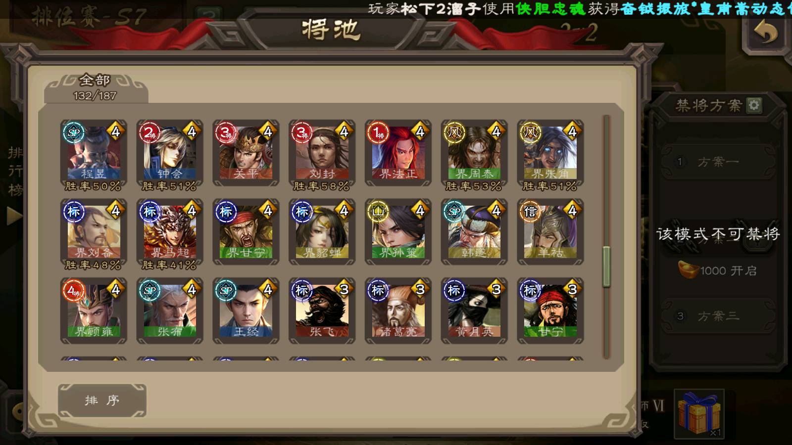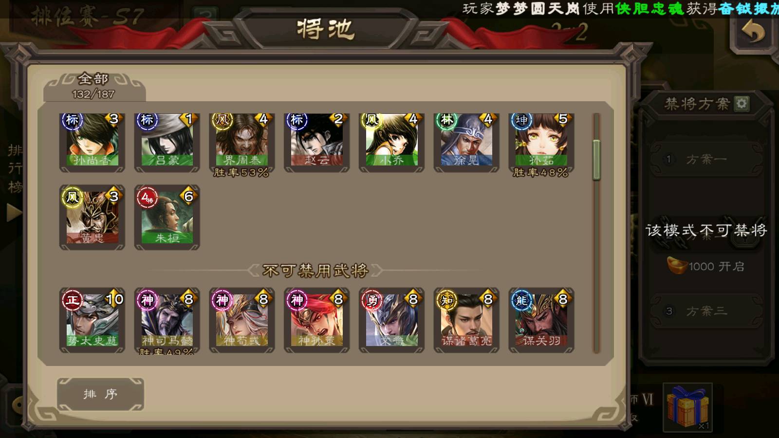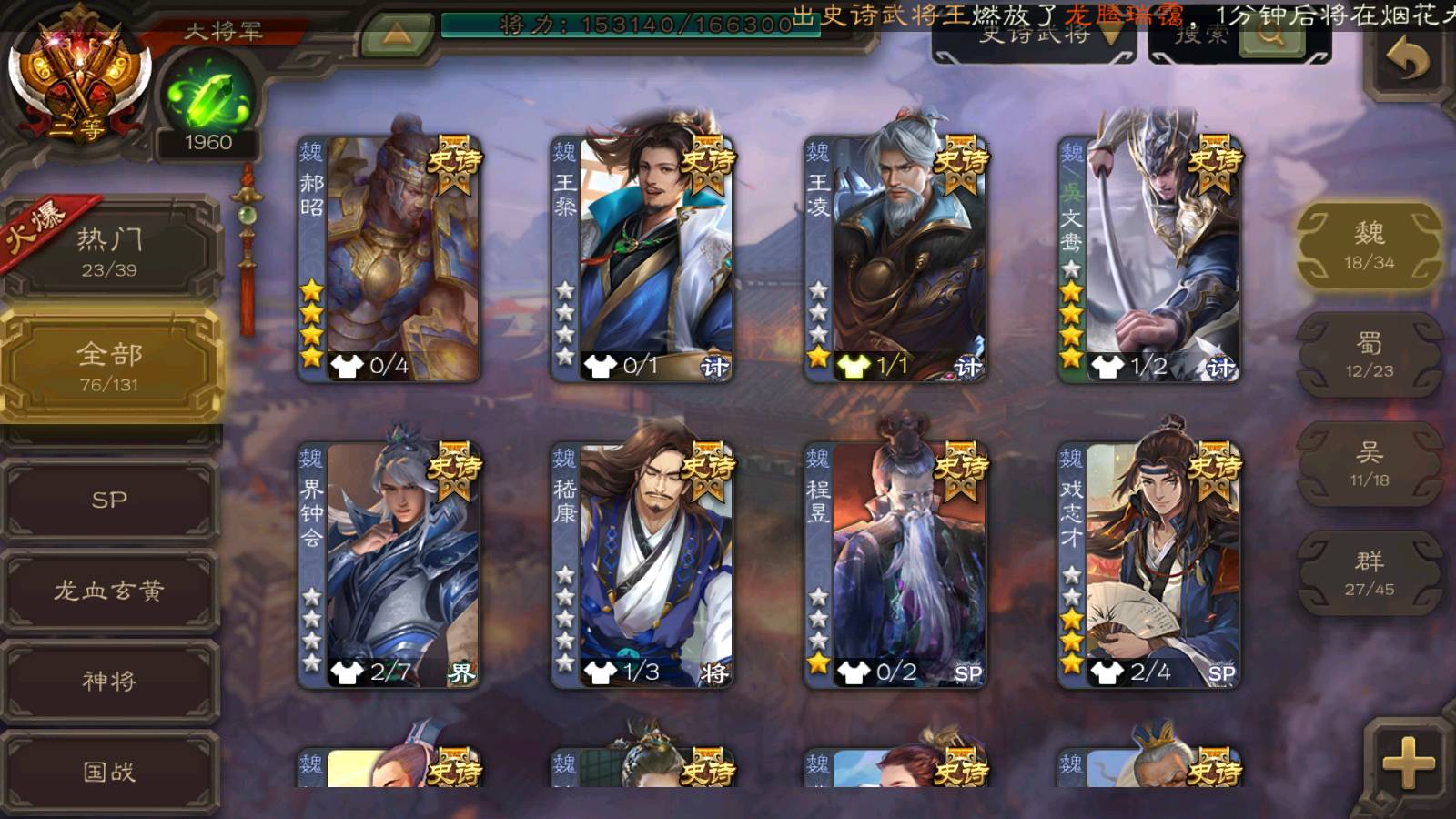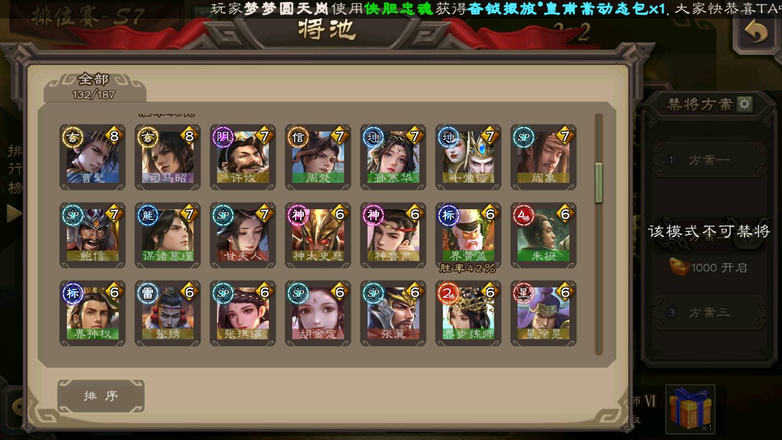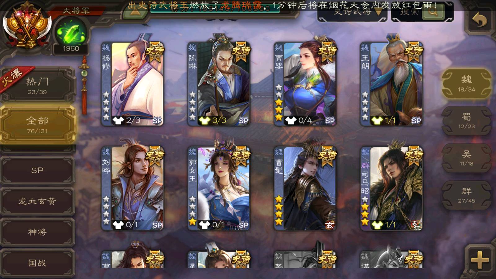 (群雄):刘焉,杜预,祢衡,界沮授,南华老仙,麴义,许攸,十常侍,星董卓,司马昭,张让,界李儒,苏飞,星甘宁,谋公孙瓒,张琪瑛,裴秀,卑弥呼,谋张角,王允,公孙康,陶谦,审配,司马徽,左慈,沮授,兀突骨