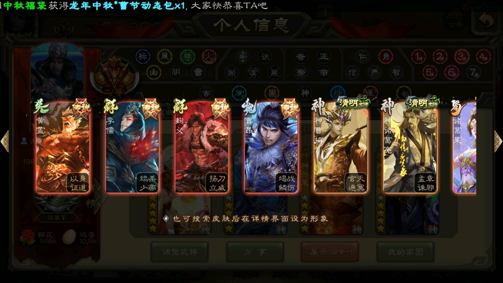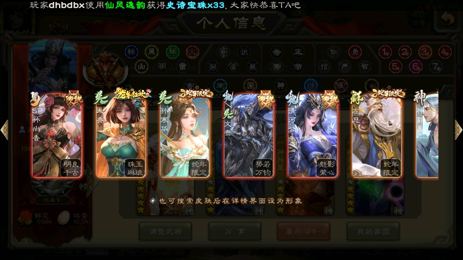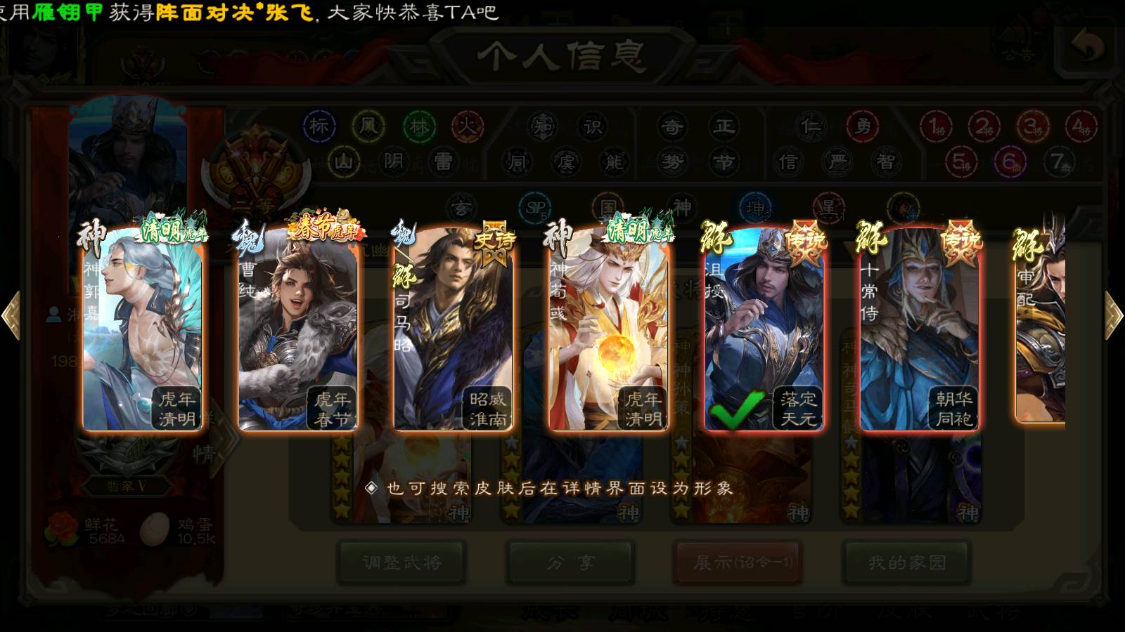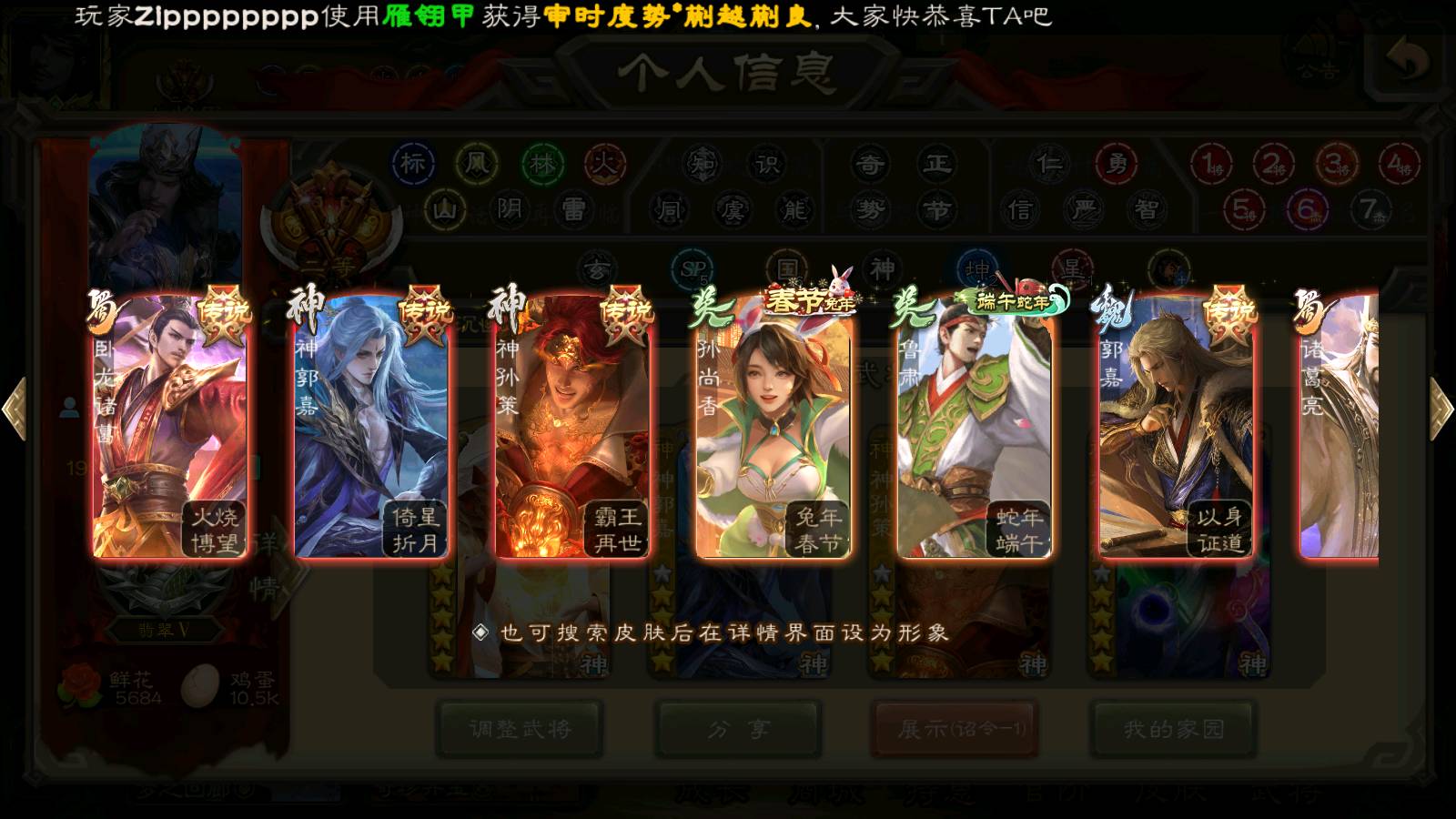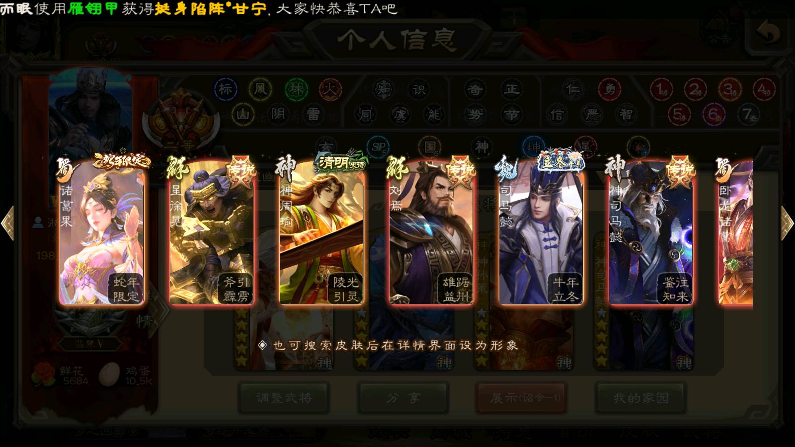 (群雄):刘焉,杜预,祢衡,界沮授,南华老仙,麴义,许攸,十常侍,星董卓,司马昭,张让,界李儒,苏飞,星甘宁,谋公孙瓒,张琪瑛,裴秀,卑弥呼,谋张角,王允,公孙康,陶谦,审配,司马徽,左慈,沮授,兀突骨