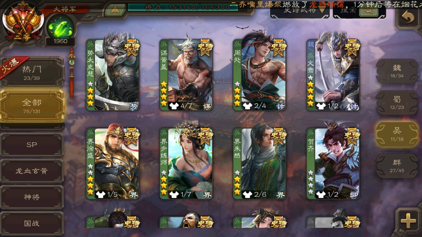 (吴国):界徐盛,留赞,孙寒华,谋黄盖,势太史慈,周处,界朱然,界步练师,贺齐,孙皓
