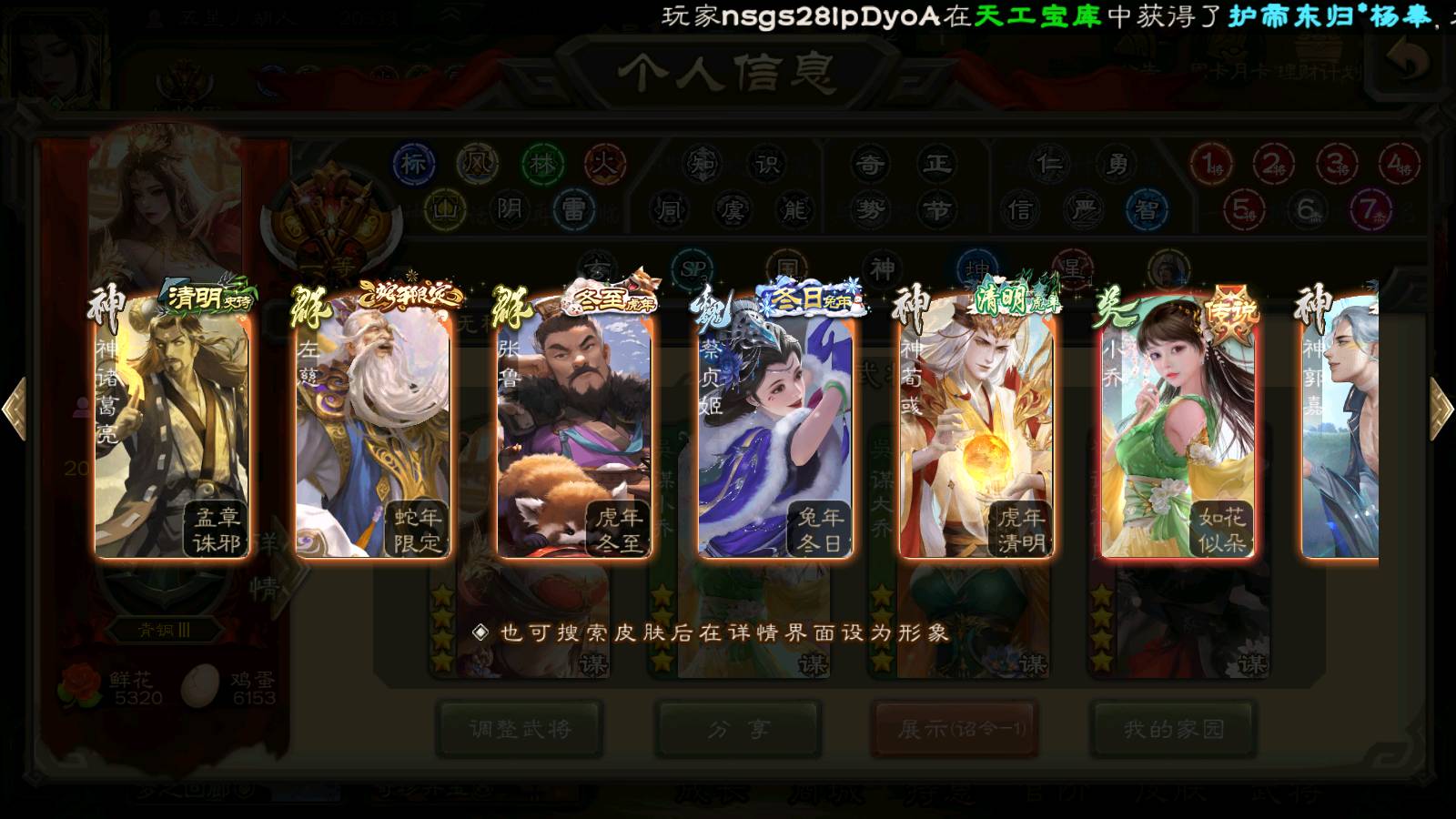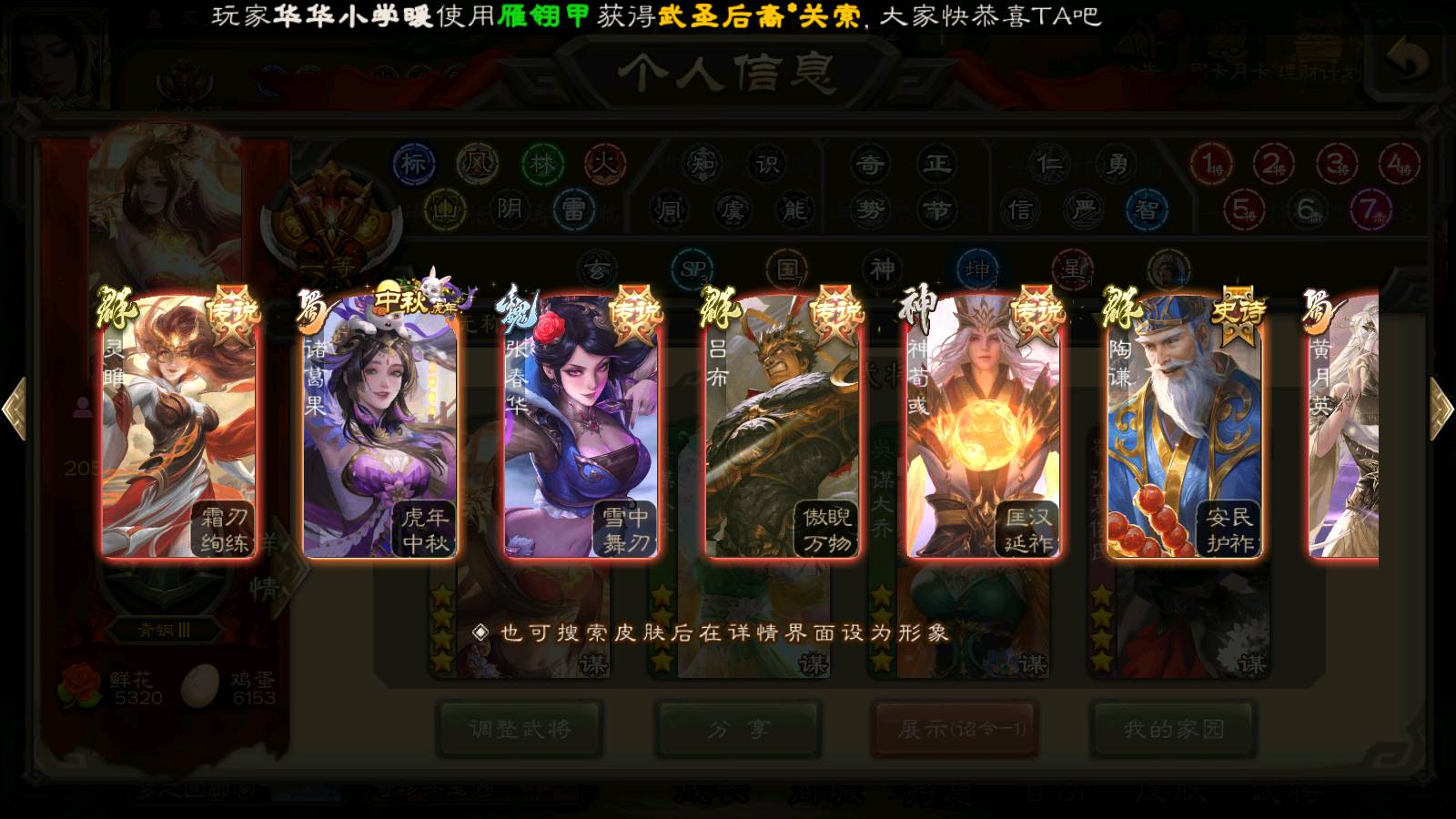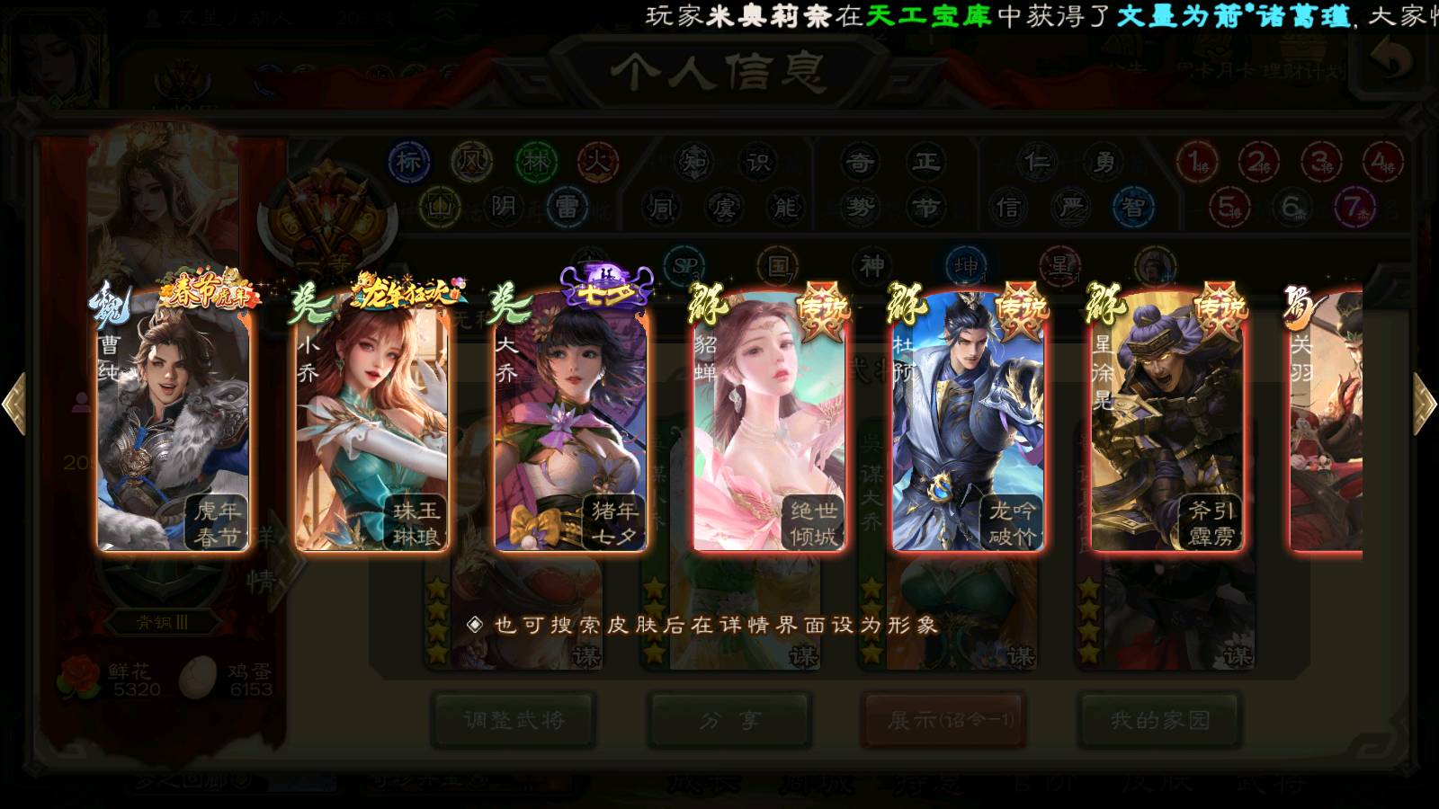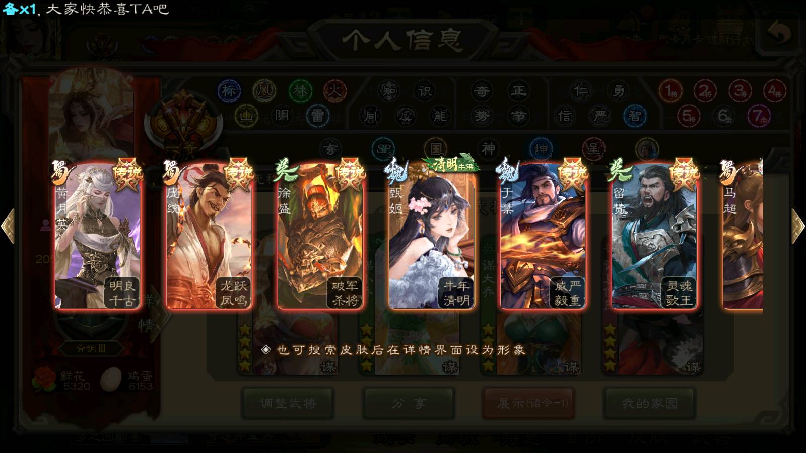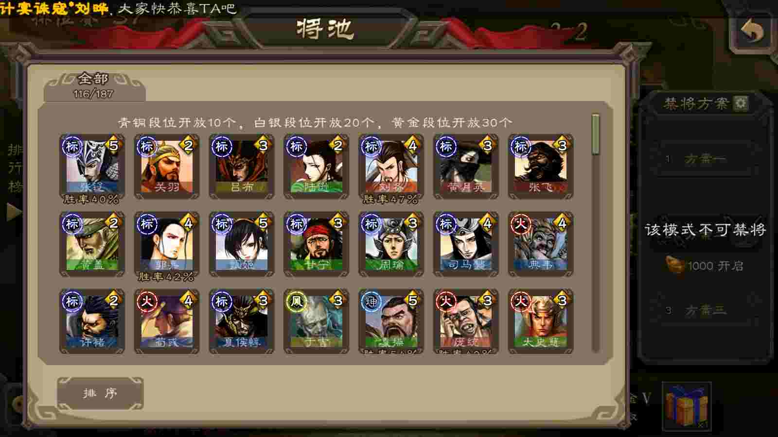 (群雄):杨彪,杜预,界左慈,界沮授,南华老仙,谋貂蝉,麴义,司马昭,谋公孙瓒,界李儒,苏飞,卑弥呼,星董卓,星黄忠,左慈,沮授,兀突骨