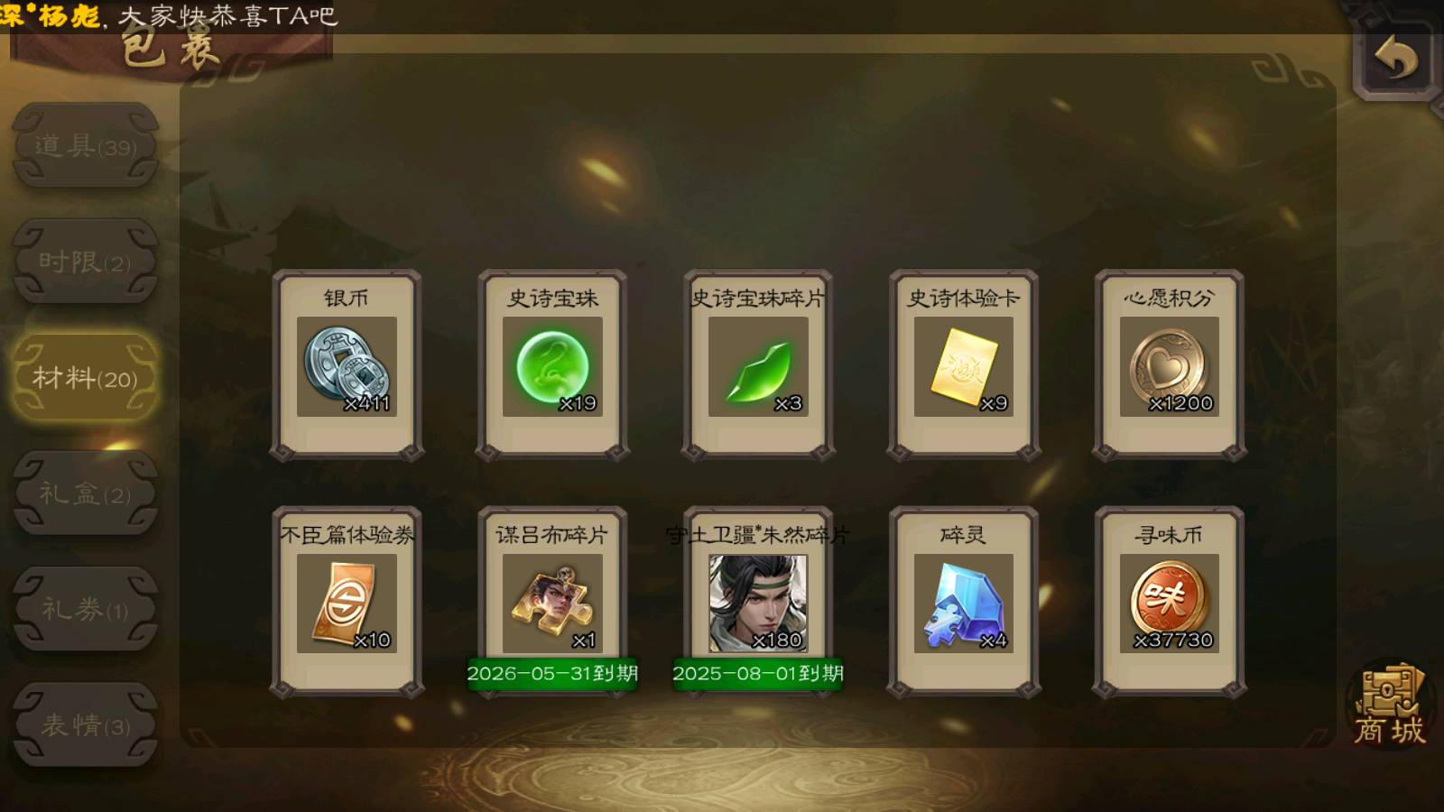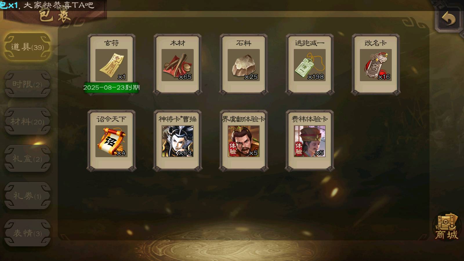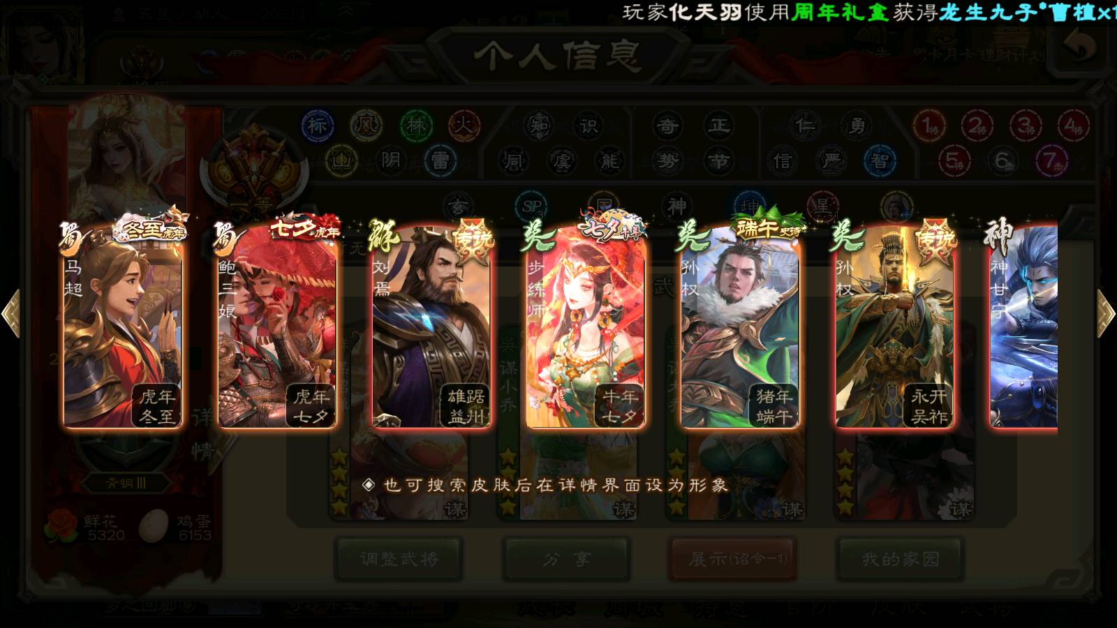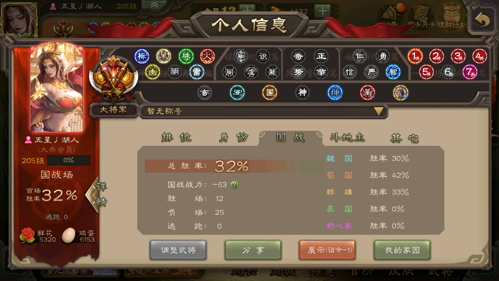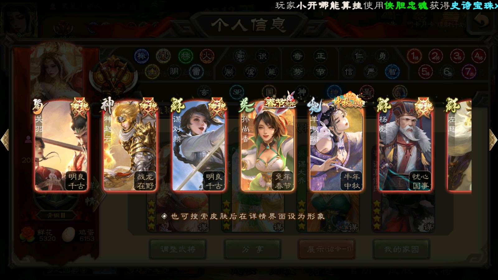 (群雄):杨彪,杜预,界左慈,界沮授,南华老仙,谋貂蝉,麴义,司马昭,谋公孙瓒,界李儒,苏飞,卑弥呼,星董卓,星黄忠,左慈,沮授,兀突骨