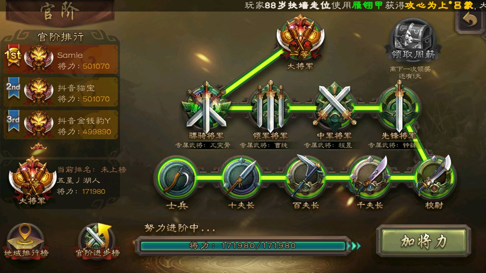 官阶:1等大将军
